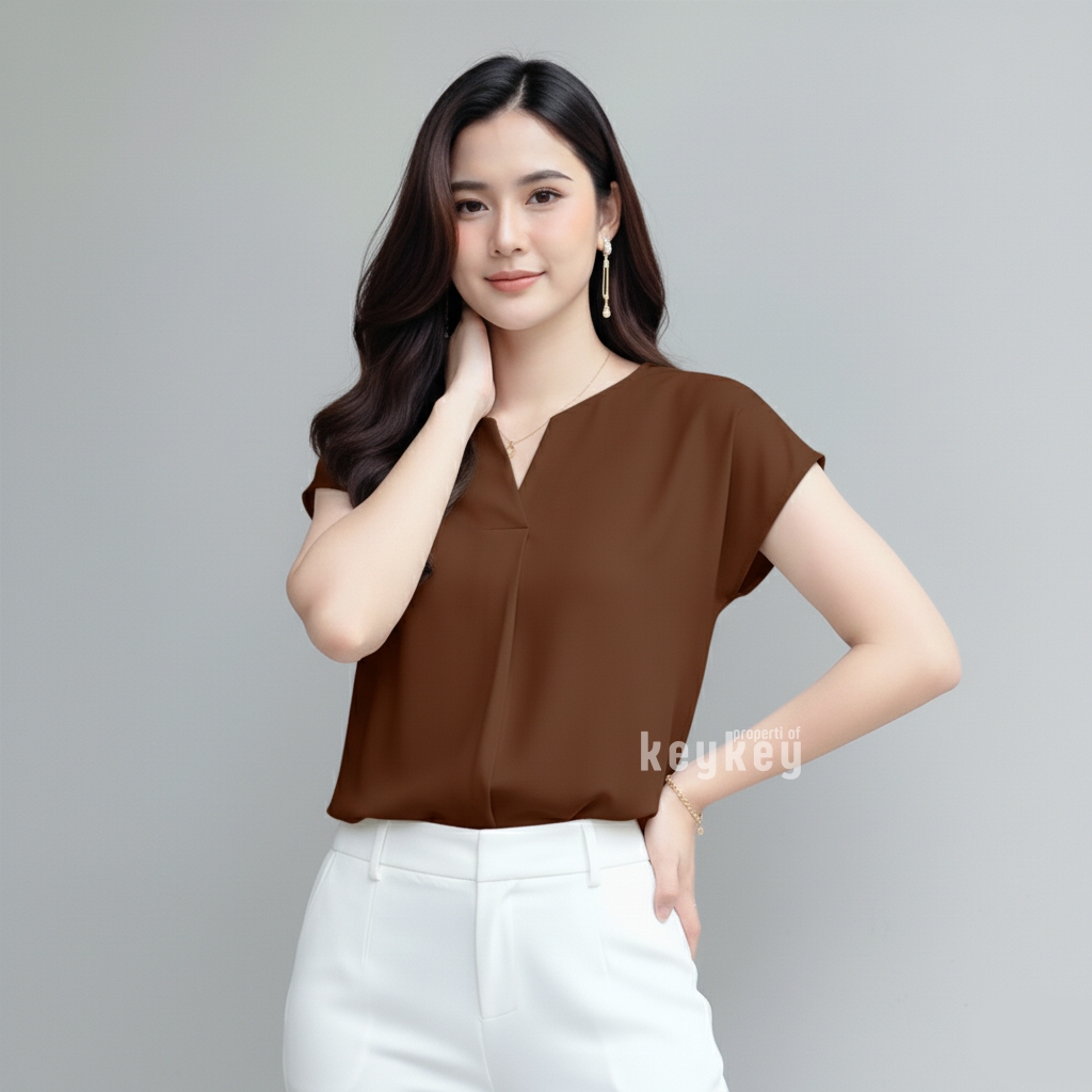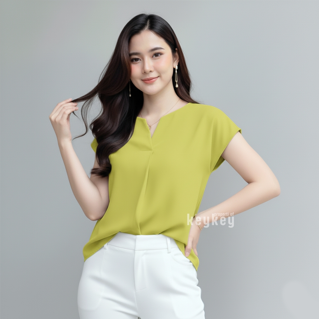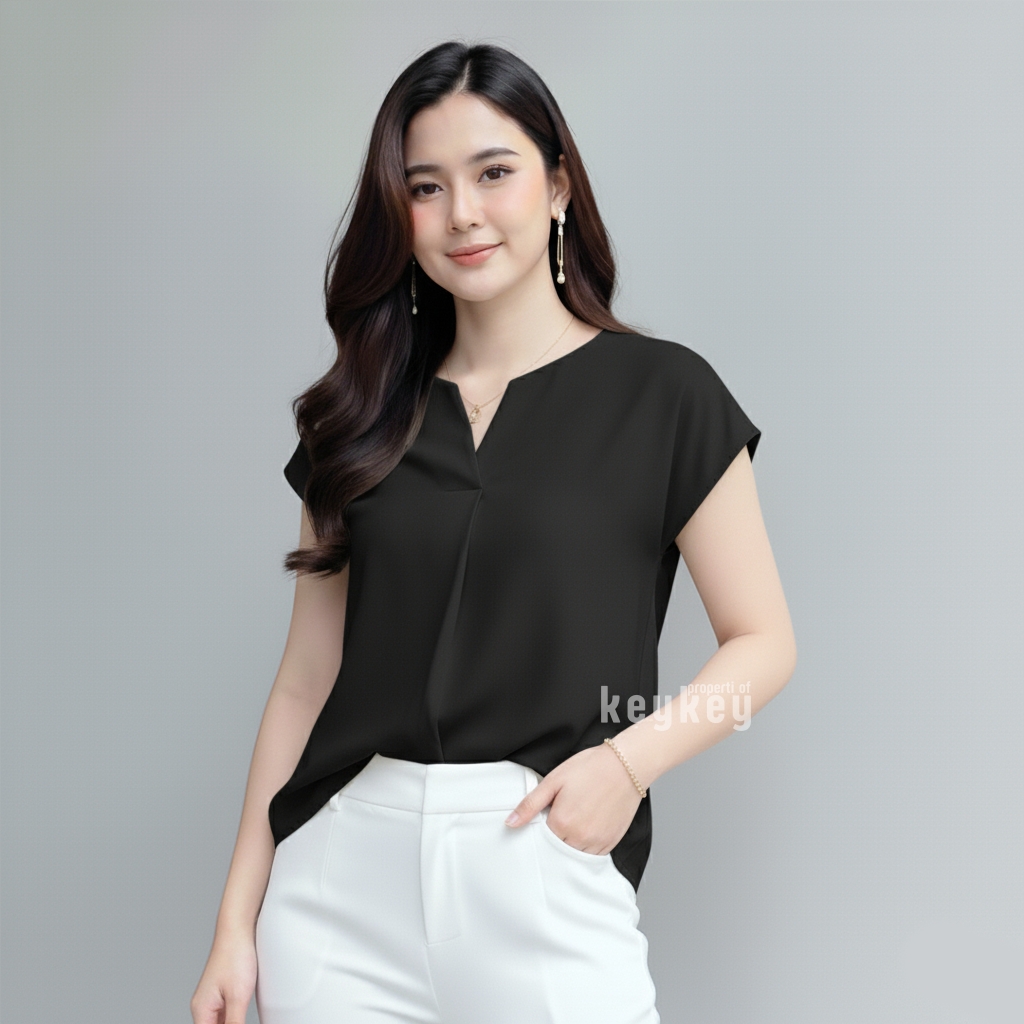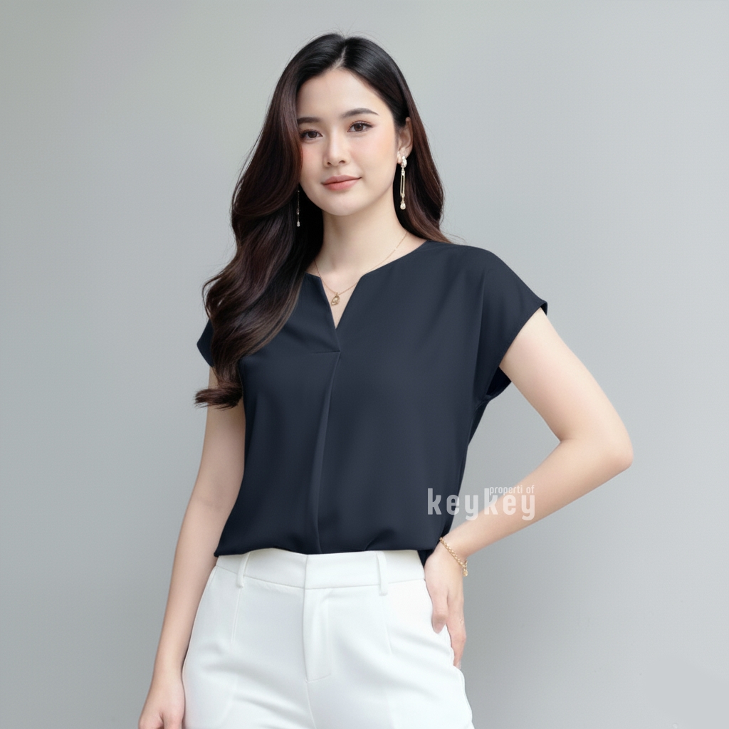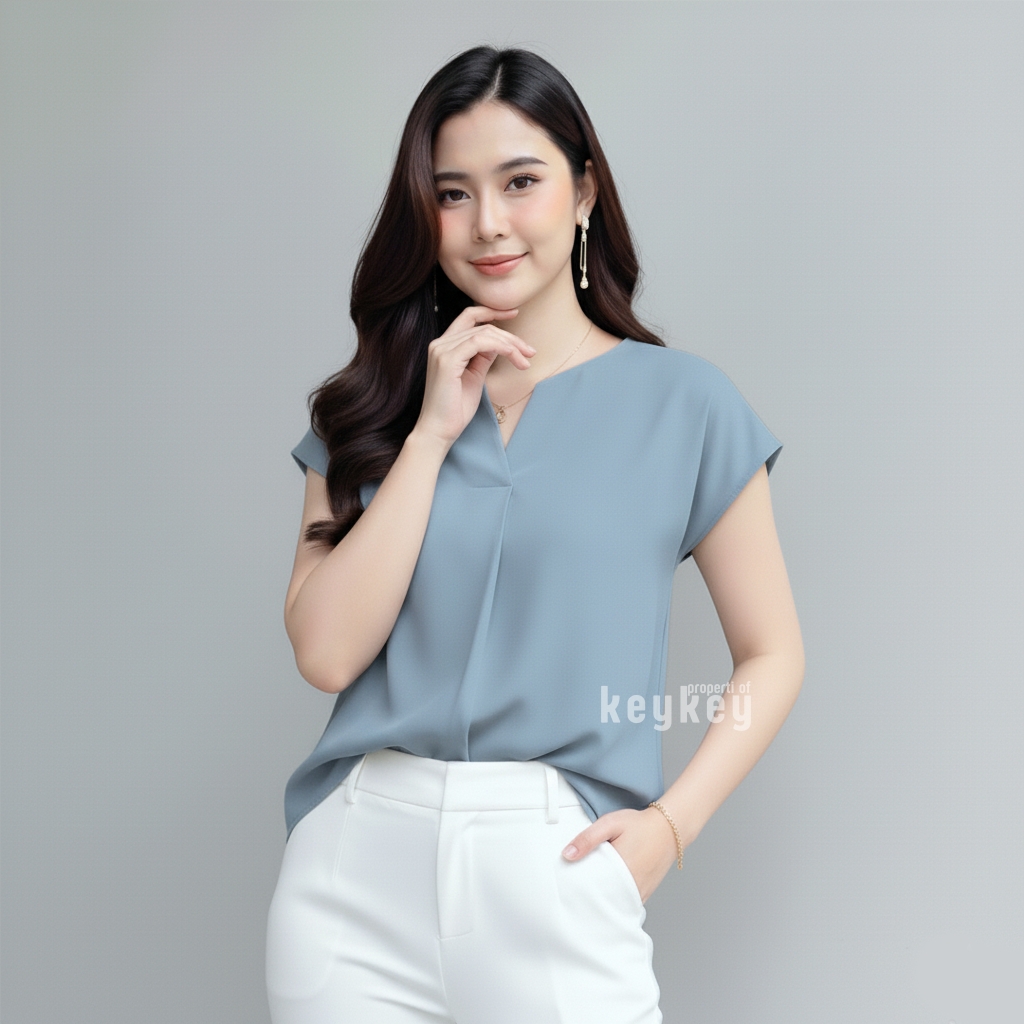 Dengan desain V-Neck split yang memberi kesan leher jenjang dan anggun, ditambah potongan loose fit yang fleksibel untuk ukuran LβXL, blouse ini pas dipakai untuk kerja, kuliah, maupun jalan santai.