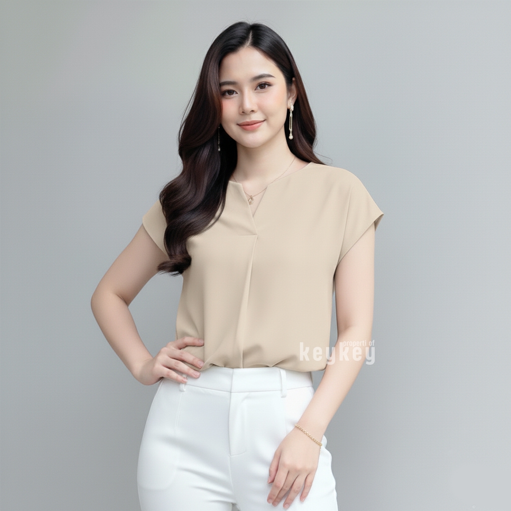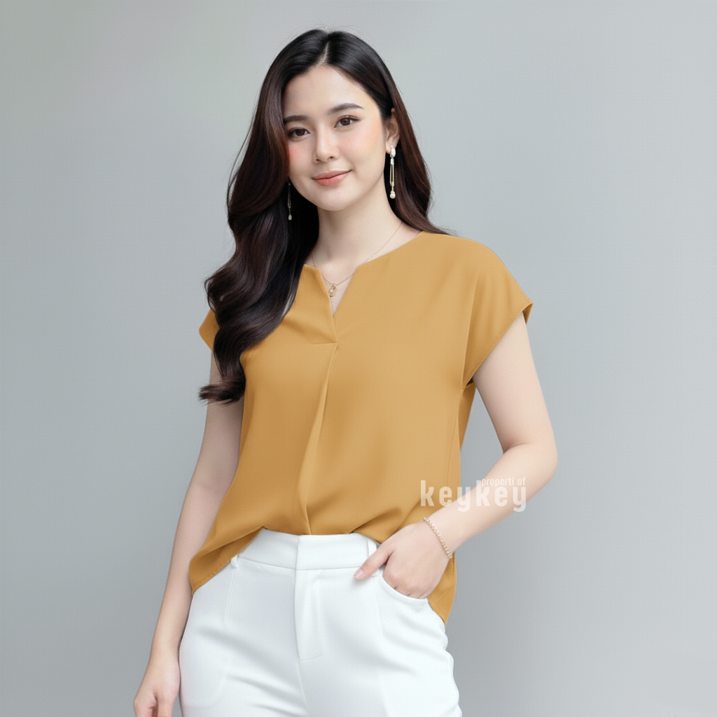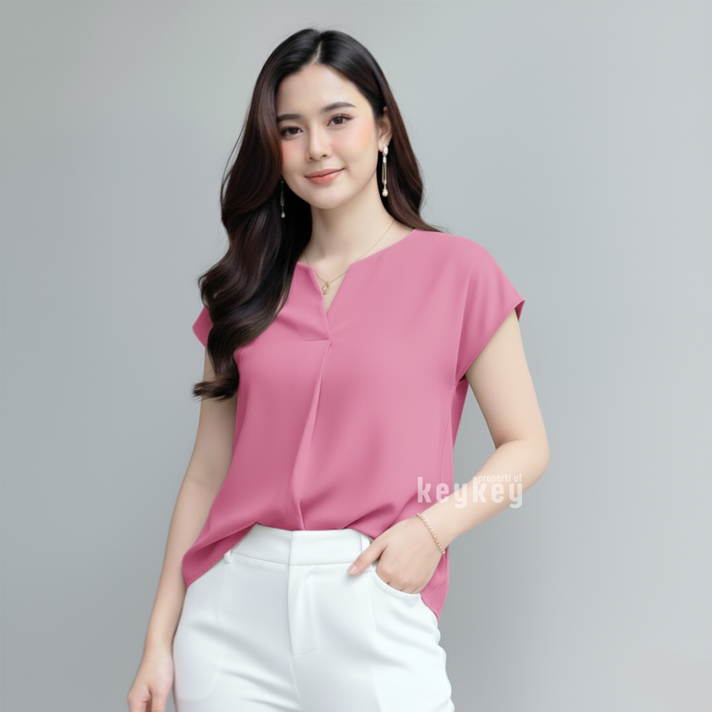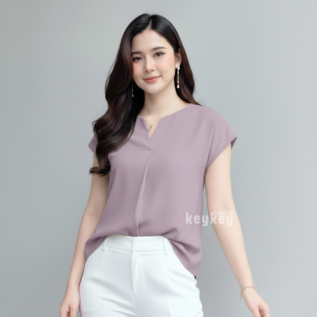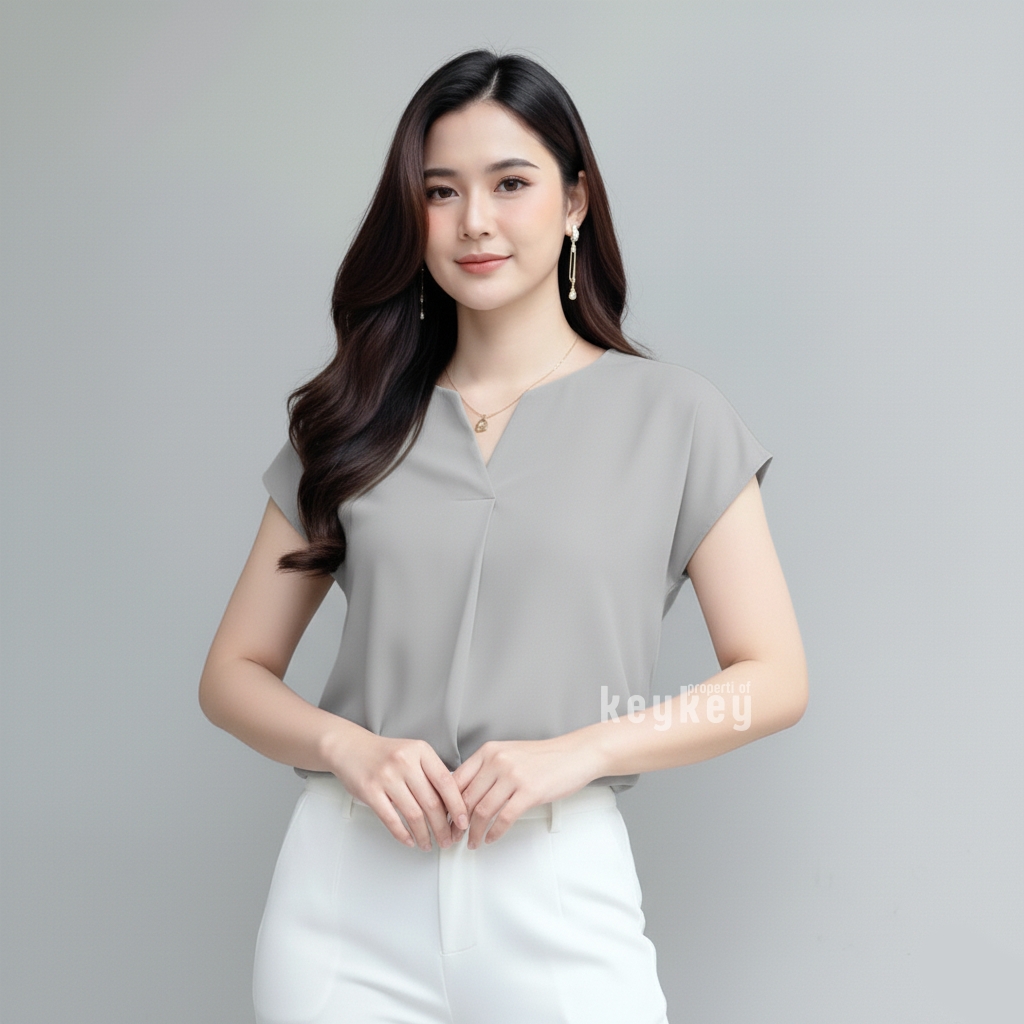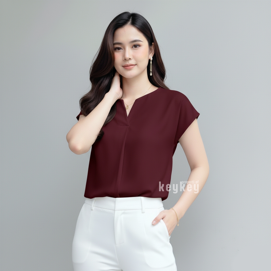 Dengan desain V-Neck split yang memberi kesan leher jenjang dan anggun, ditambah potongan loose fit yang fleksibel untuk ukuran LβXL, blouse ini pas dipakai untuk kerja, kuliah, maupun jalan santai.