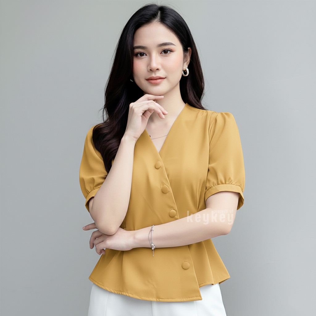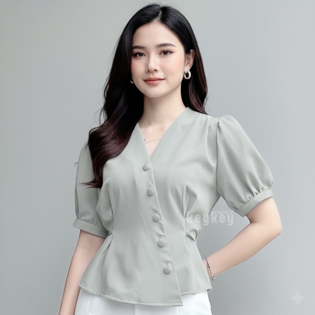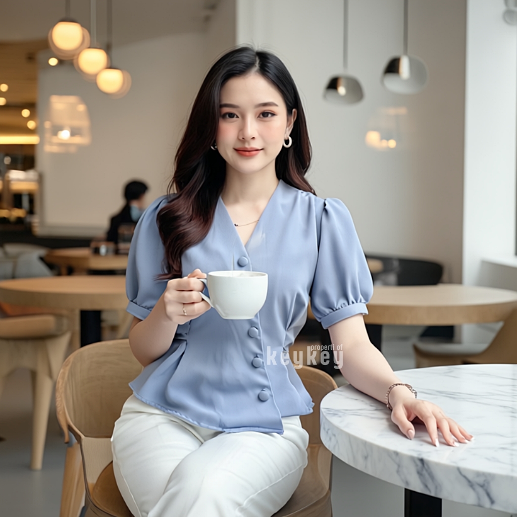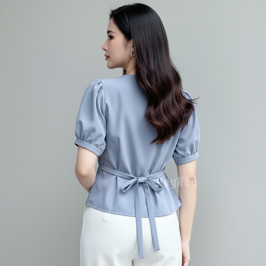 Terbuat dari bahan wolfis premium, blouse ini memiliki tekstur halus, adem, dan nyaman dipakai seharian, baik untuk ke kantor, kuliah, maupun hangout santai. Dilengkapi full kancing kain senada yang memberikan kesan rapi, serta tali ikat belakang yang bisa disesuaikan agar lebih fit mengikuti bentuk tubuhmu.