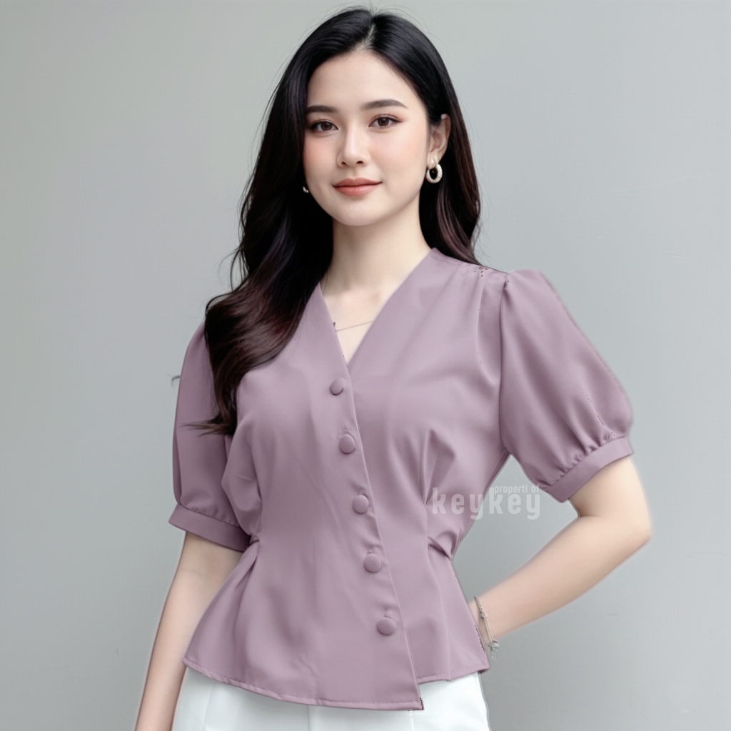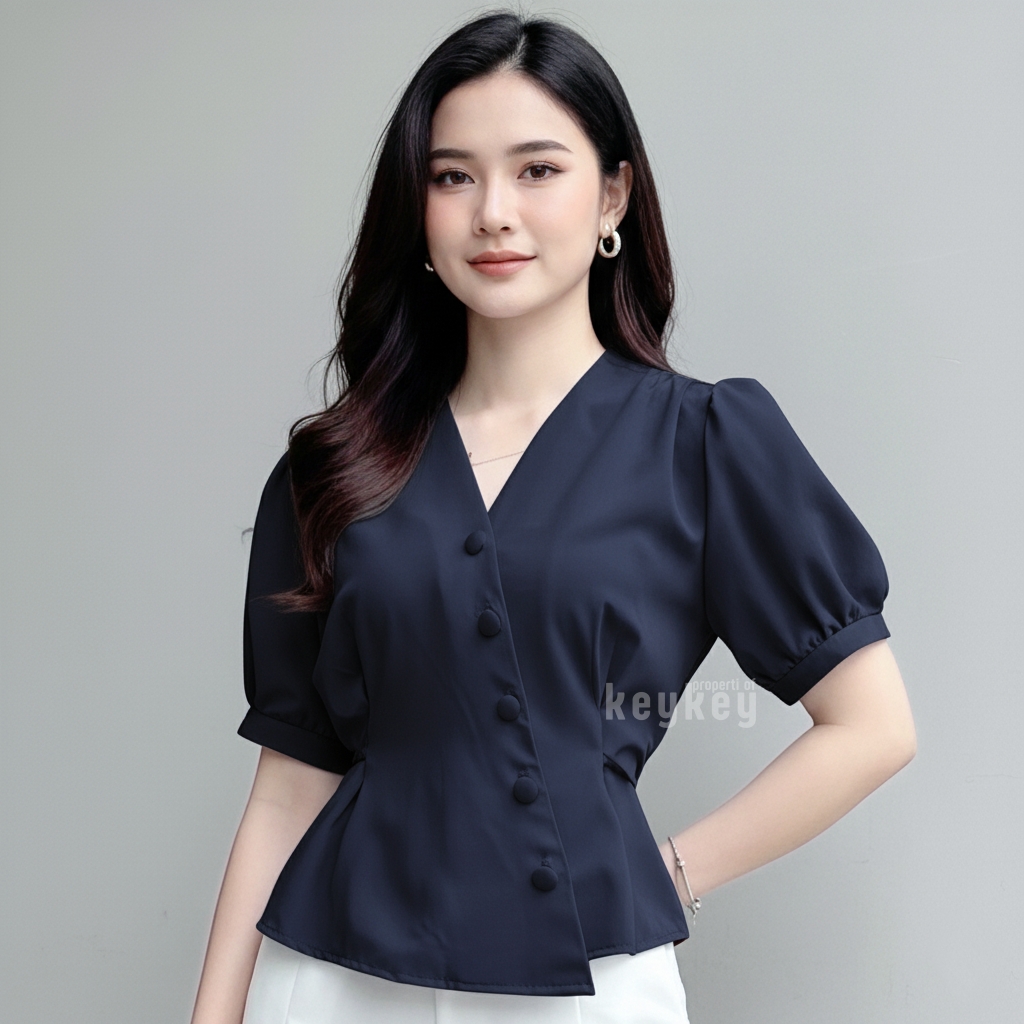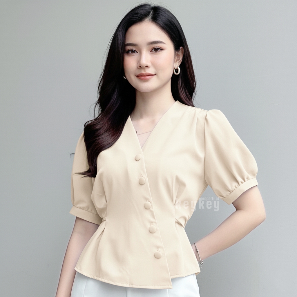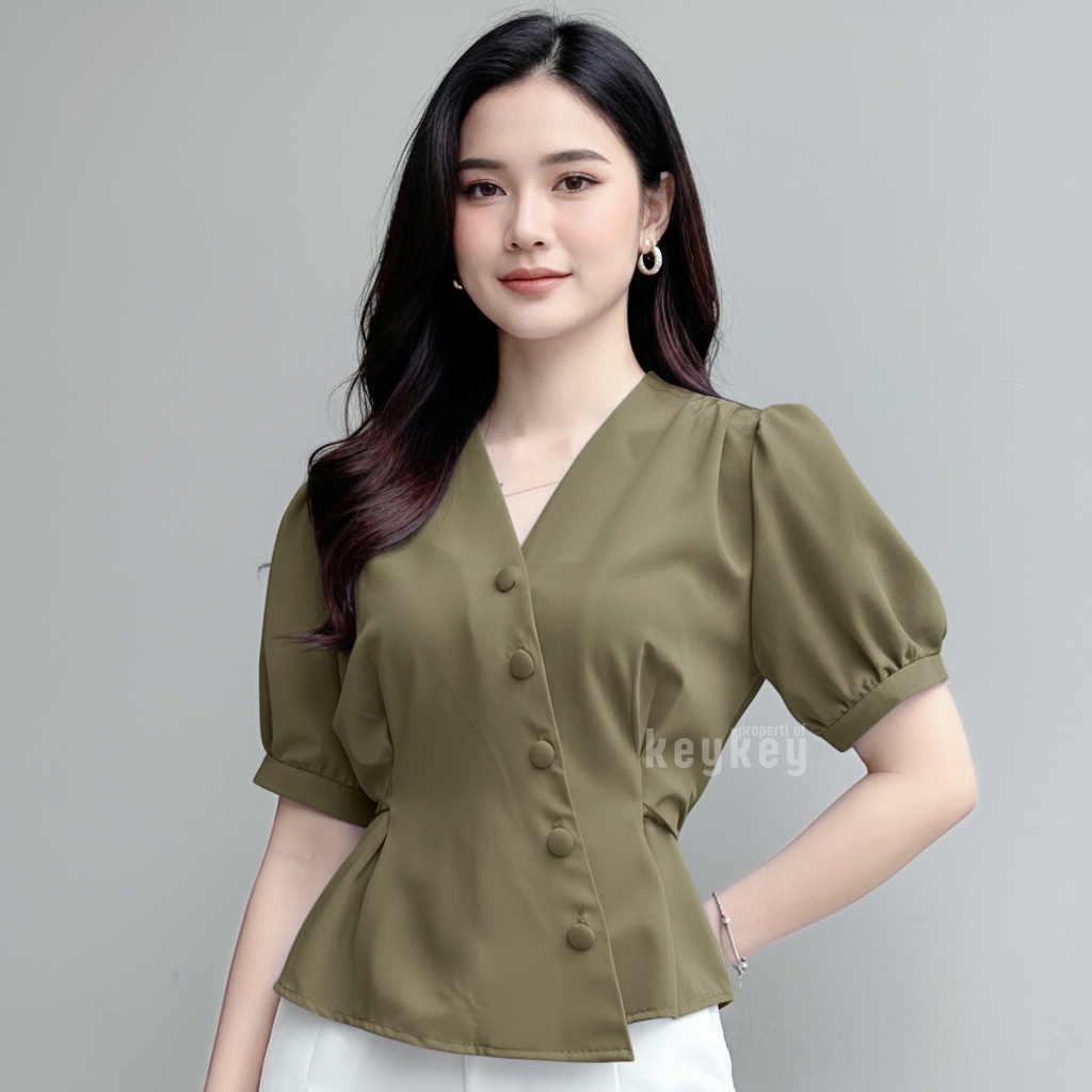 Terbuat dari bahan wolfis premium, blouse ini memiliki tekstur halus, adem, dan nyaman dipakai seharian, baik untuk ke kantor, kuliah, maupun hangout santai. Dilengkapi full kancing kain senada yang memberikan kesan rapi, serta tali ikat belakang yang bisa disesuaikan agar lebih fit mengikuti bentuk tubuhmu.