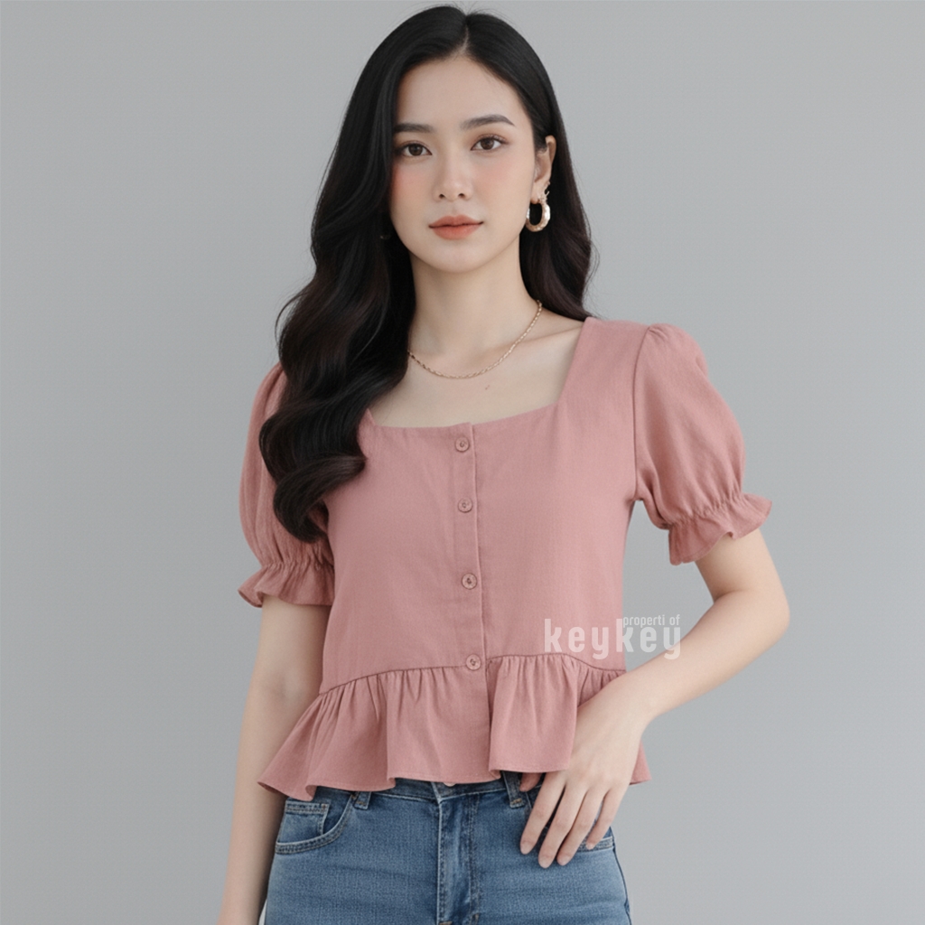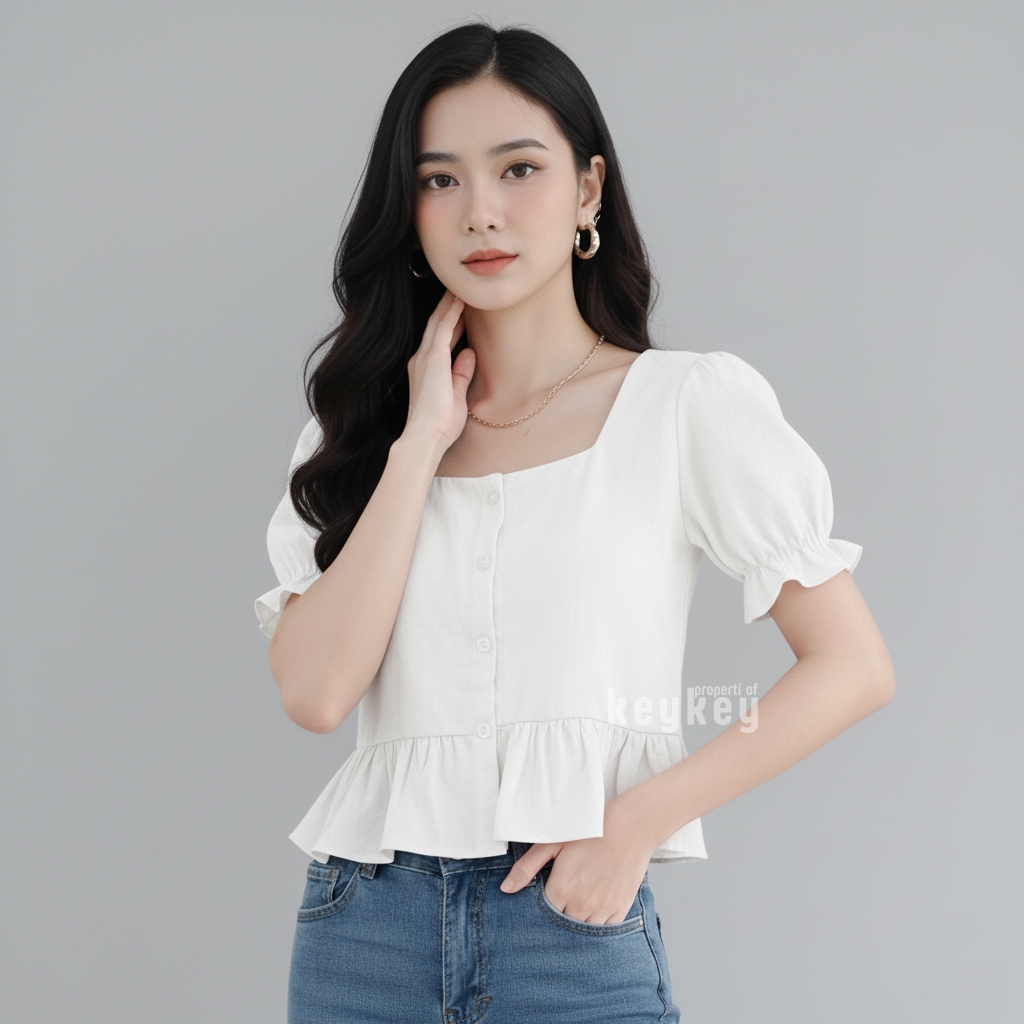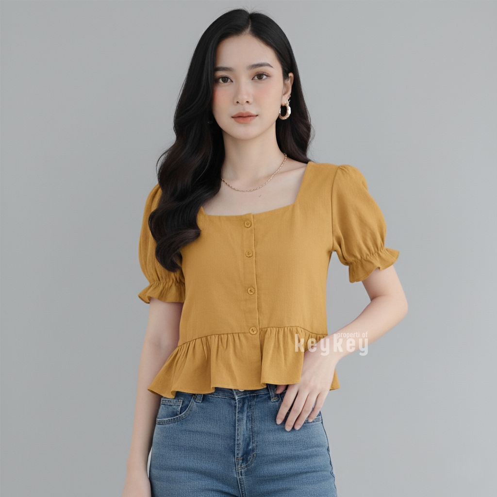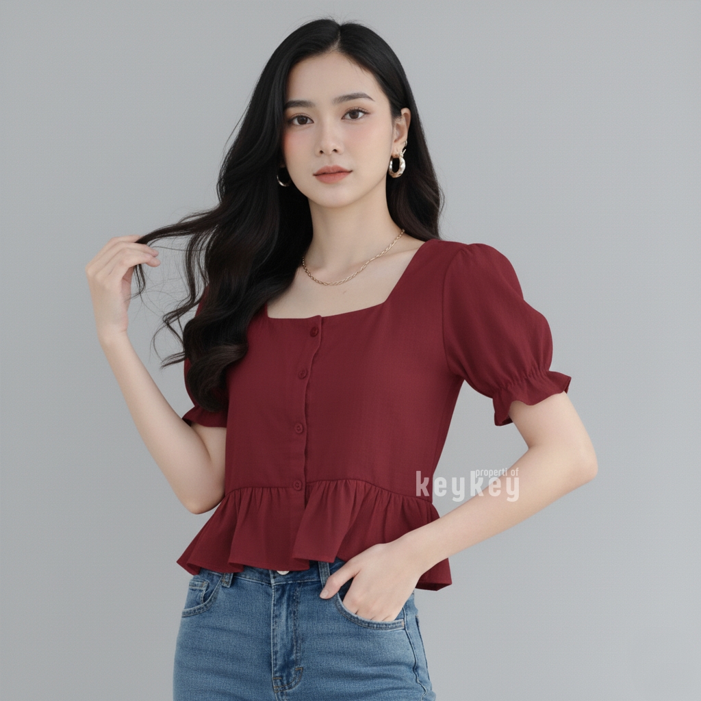 👗 Model: Square Neckline + Peplum Ruffle