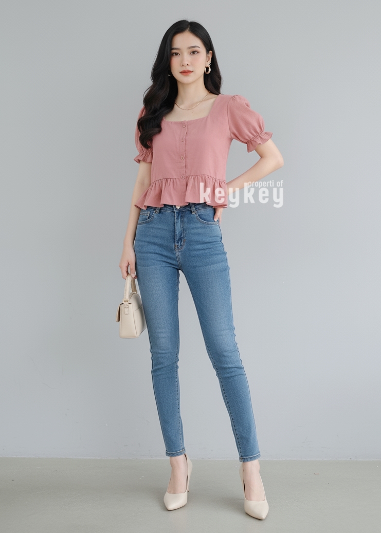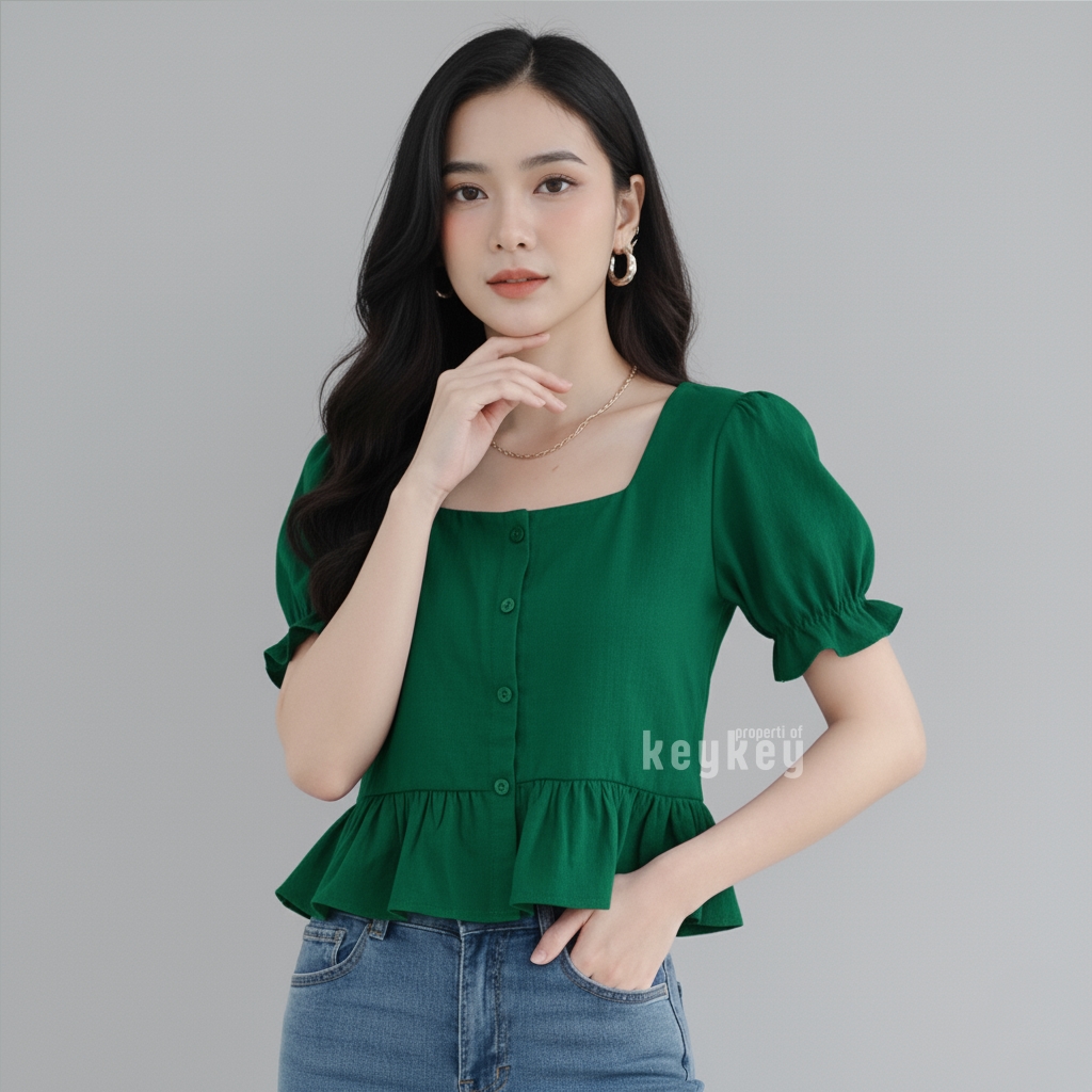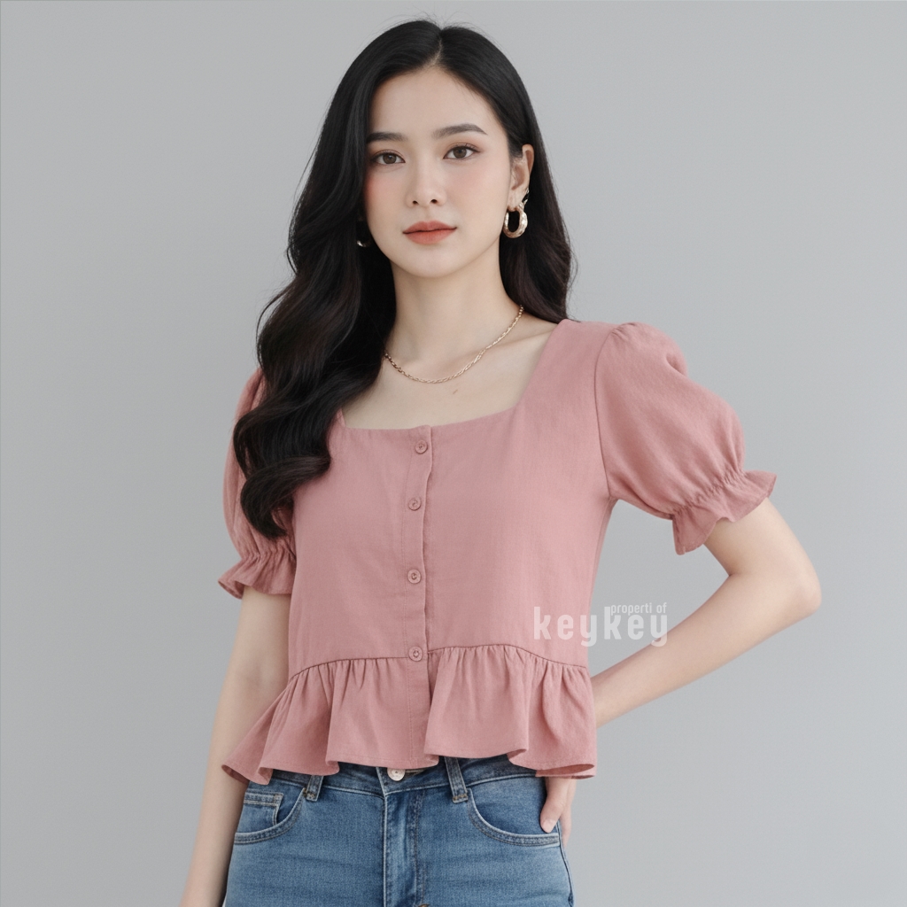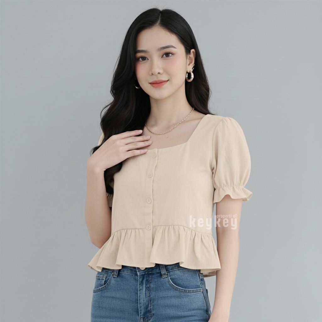 👗 Model: Square Neckline + Peplum Ruffle