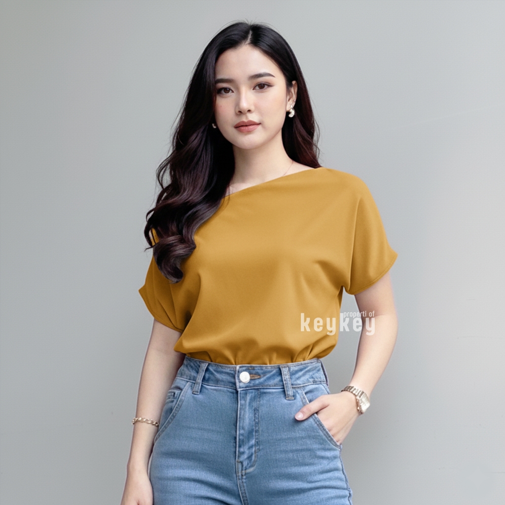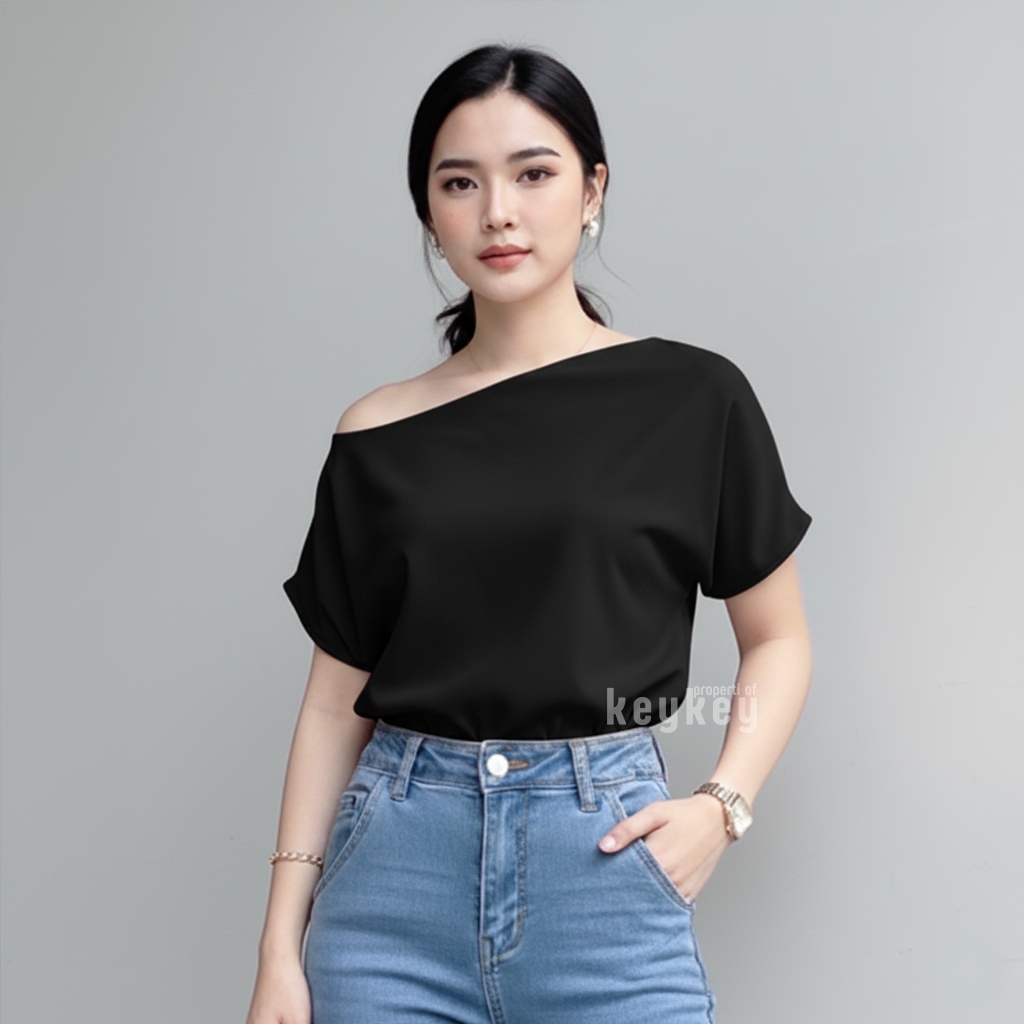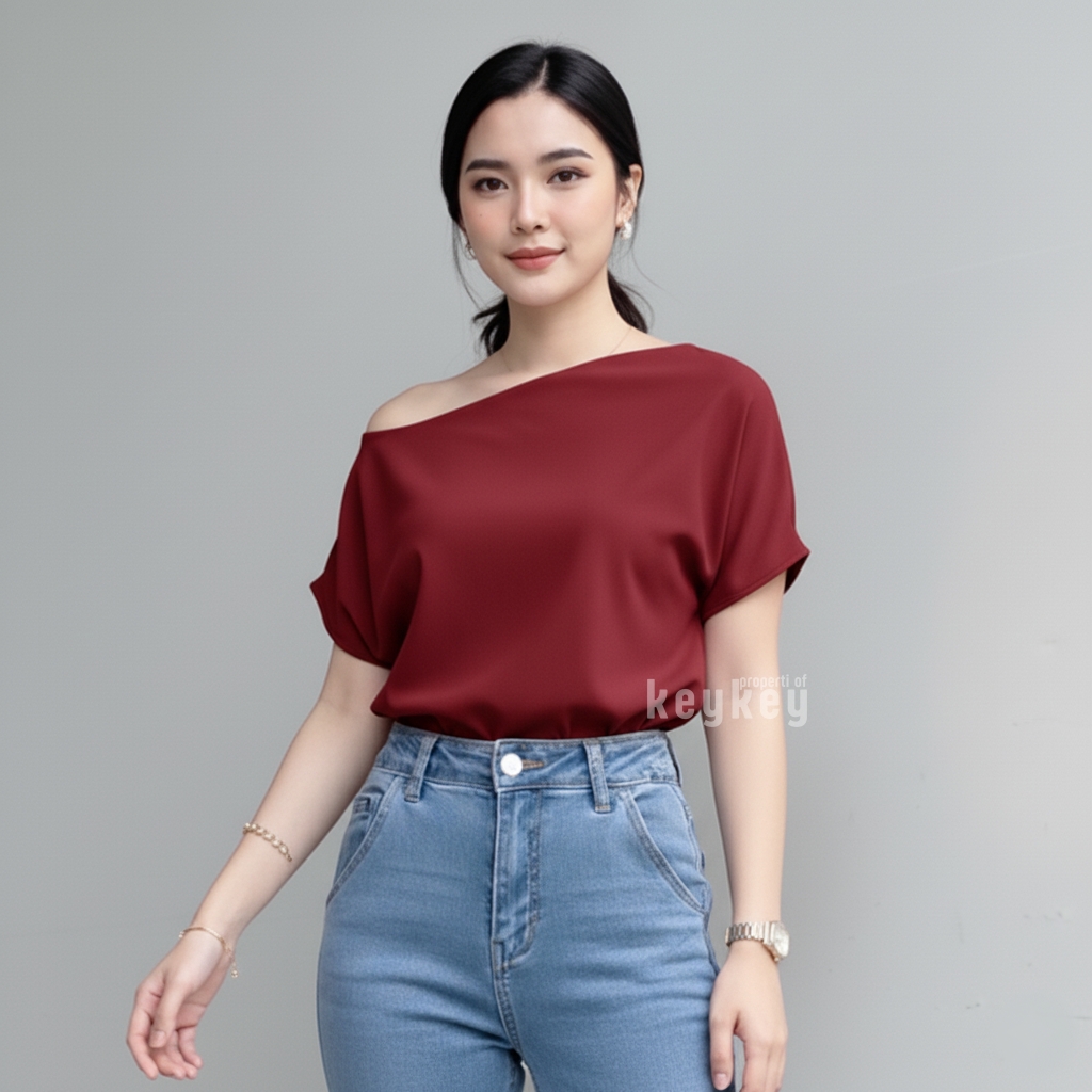 Blouse one-shoulder ini dirancang untuk wanita modern yang ingin tampil chic, simpel, tapi tetap classy. Menggunakan bahan moscrepe premium, blouse ini terasa lembut, jatuh indah saat dipakai, dan nyaman dipakai sepanjang hari.