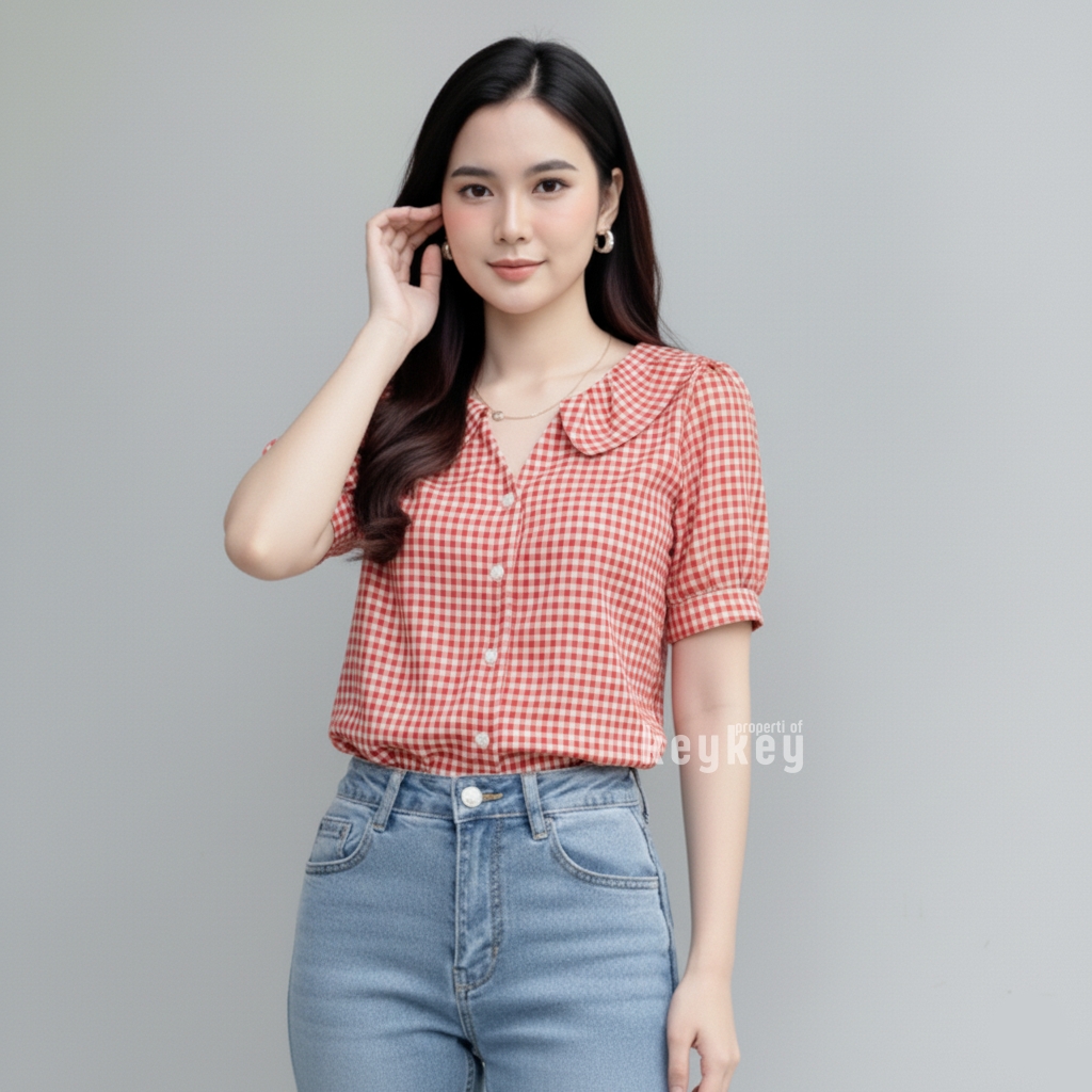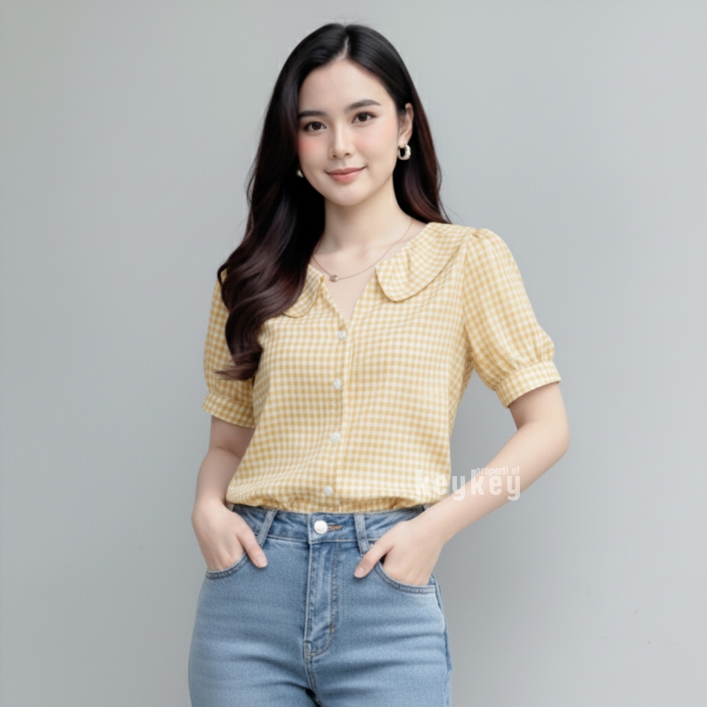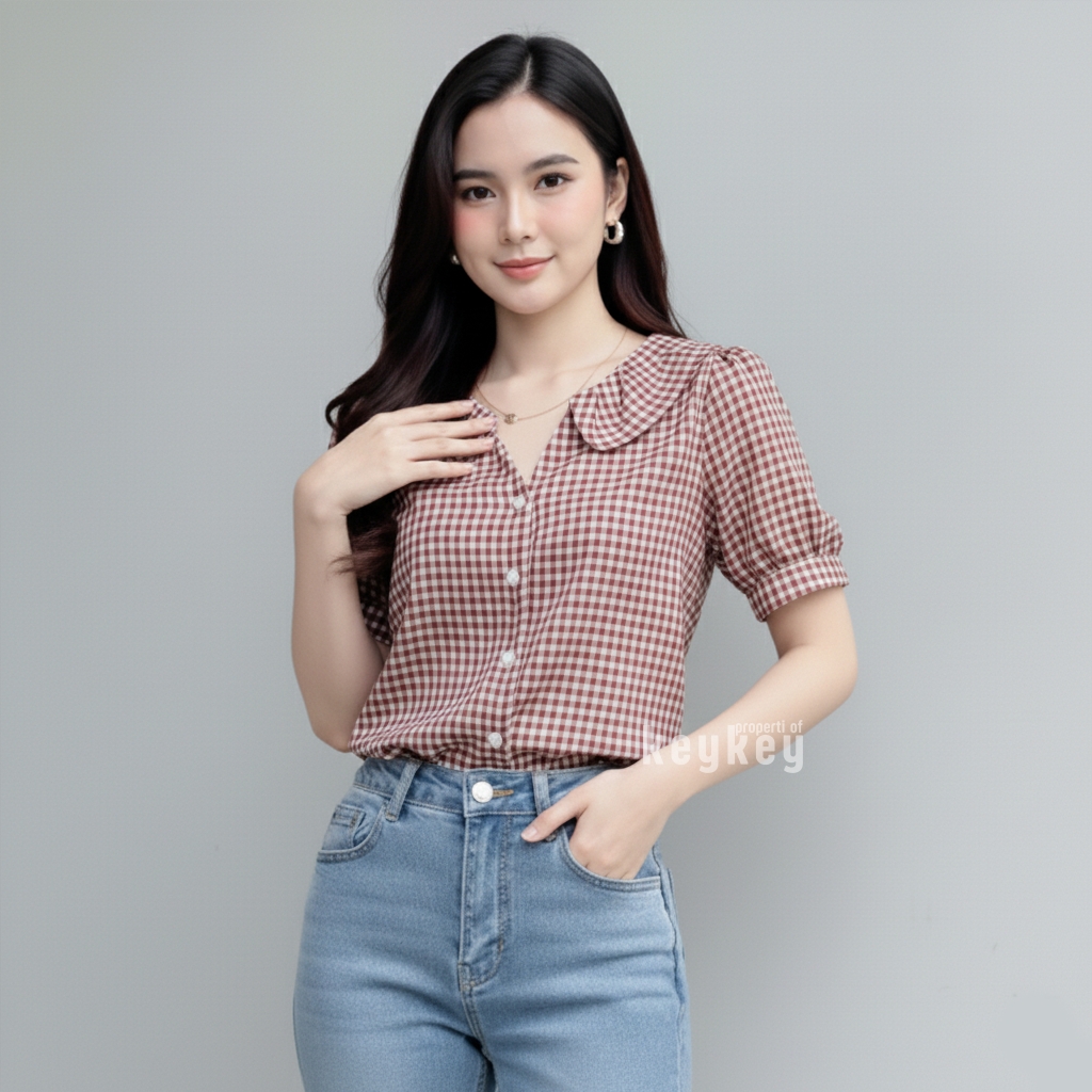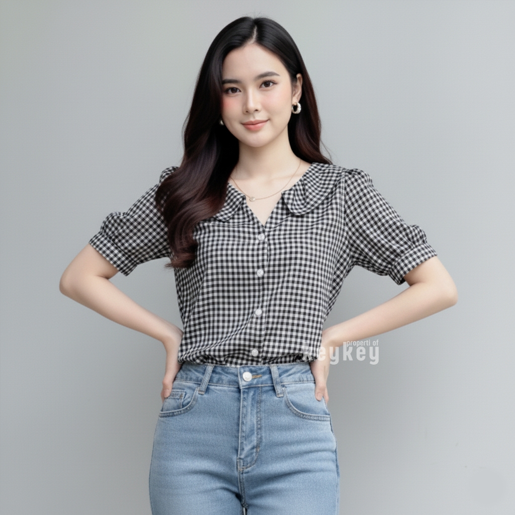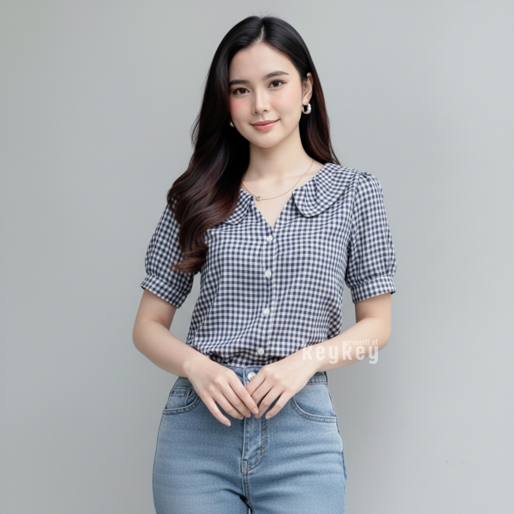 Desain motif kotak-kotak timeless dipadukan dengan full kancing hidup membuatnya fleksibel: bisa dipakai rapi sebagai kemeja kerja atau dibuka sebagai outer untuk look casual. Warna navy memberikan kesan fresh, ceria, dan elegan yang cocok dipadukan dengan celana putih, jeans, kulot, atau rok favoritmu.