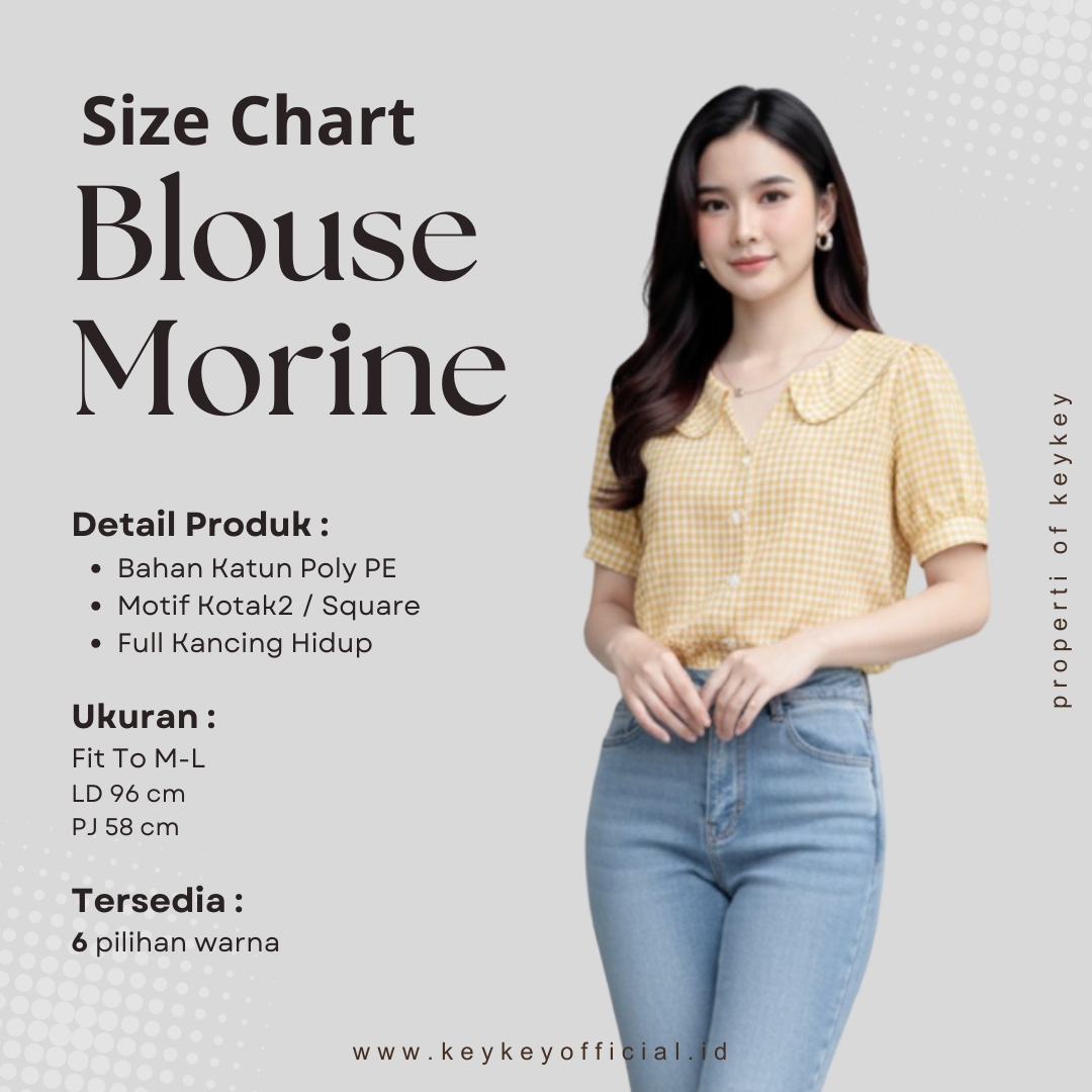 Tampil chic & percaya diri dengan Blouse MORINE varian Navy, pilihan tepat untuk kamu yang suka gaya simpel namun tetap stylish. Blouse ini terbuat dari bahan Katun Poly PE premium yang halus, adem, dan nyaman dipakai seharian, baik untuk kerja, kuliah, maupun hangout santai.