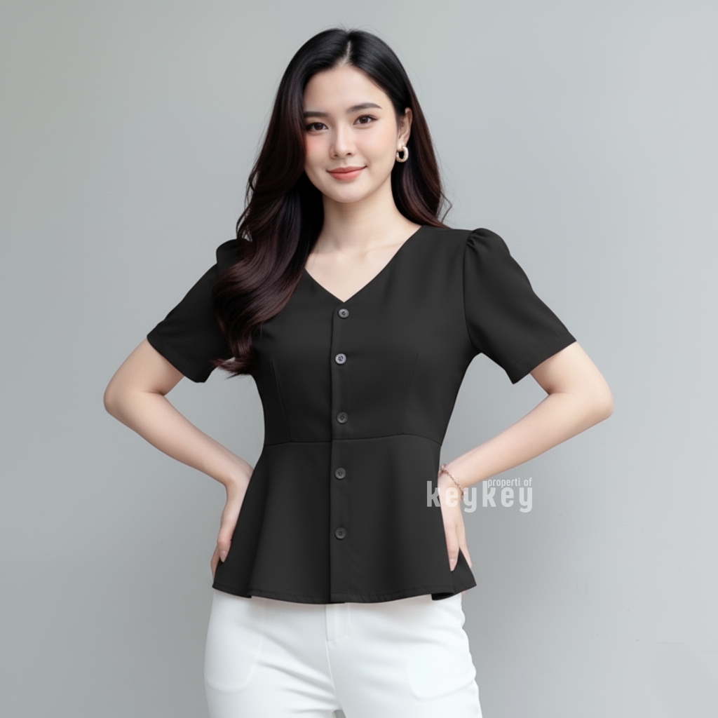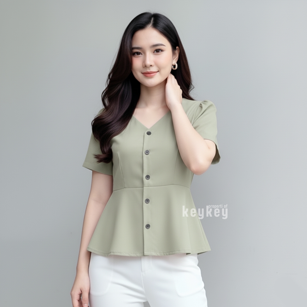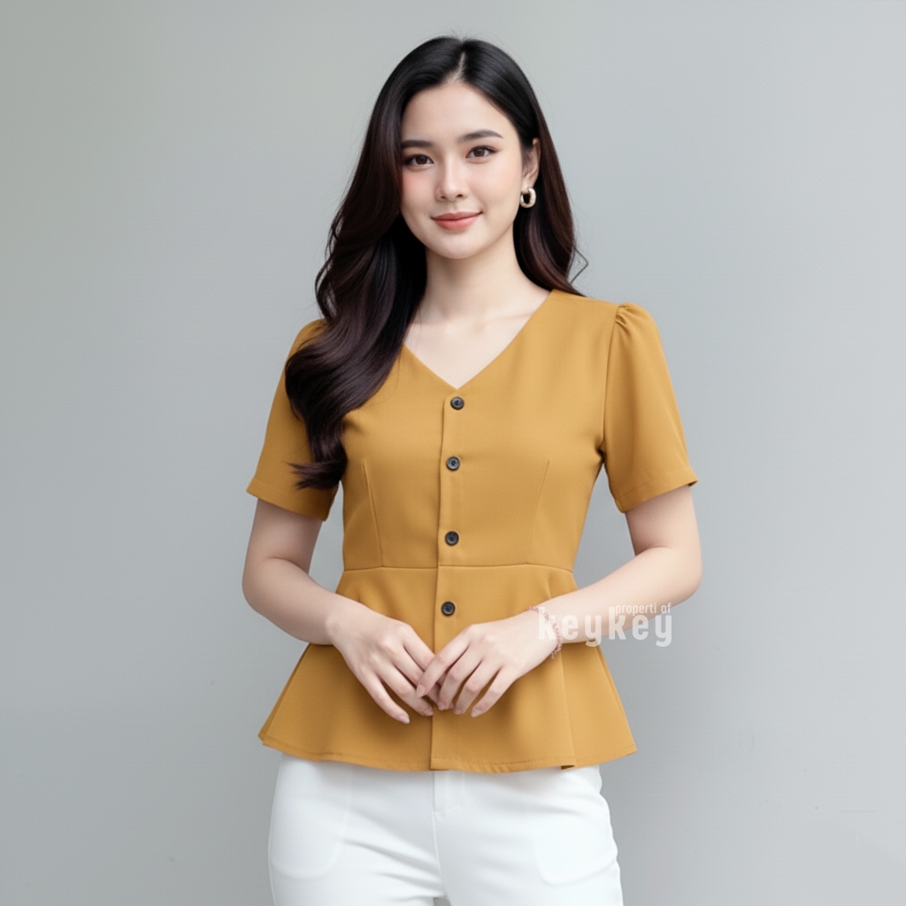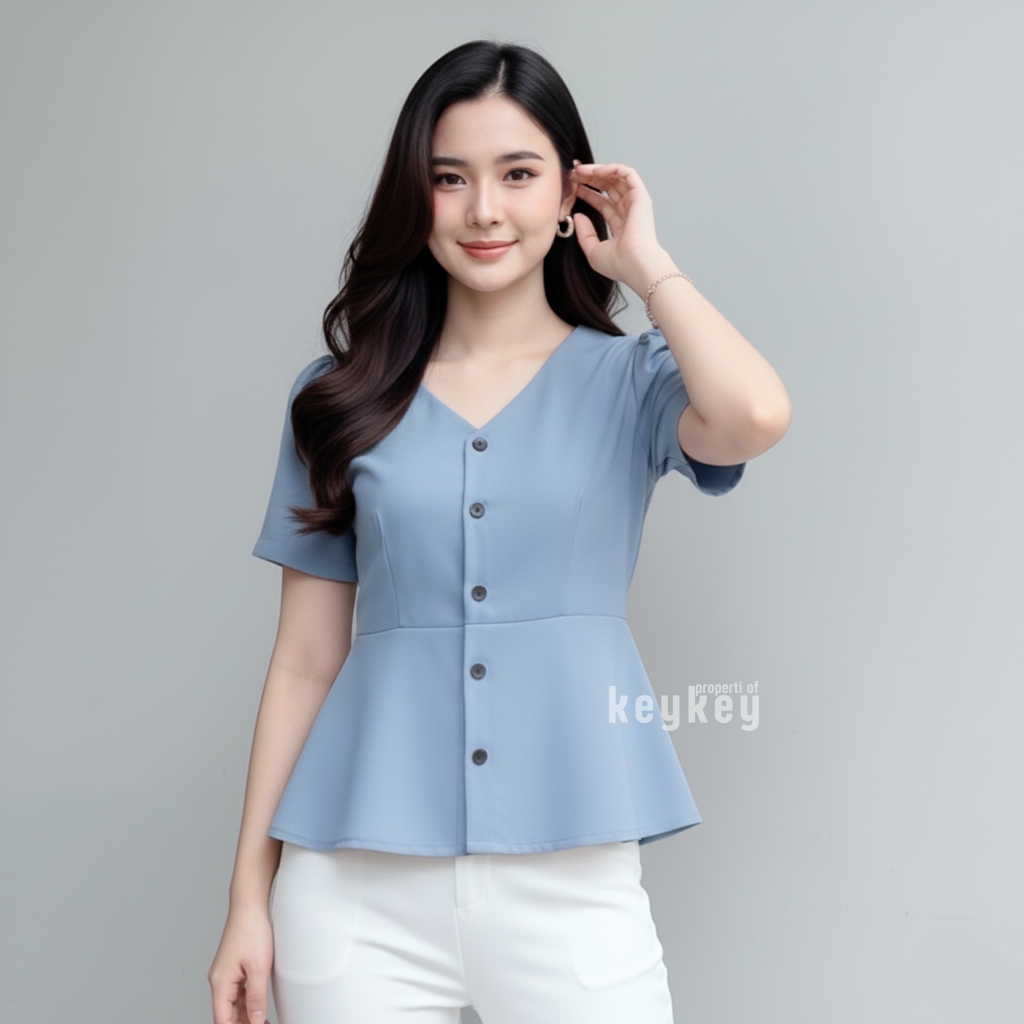 Blouse ini hadir dengan model peplum elegan yang mampu memberikan siluet ramping pada tubuh, sehingga cocok dipakai untuk segala suasana. Dibuat dari bahan wolfis premium, kainnya halus, jatuh, adem, dan tidak menerawang, sehingga nyaman dipakai seharian untuk kerja, kuliah, maupun acara santai.