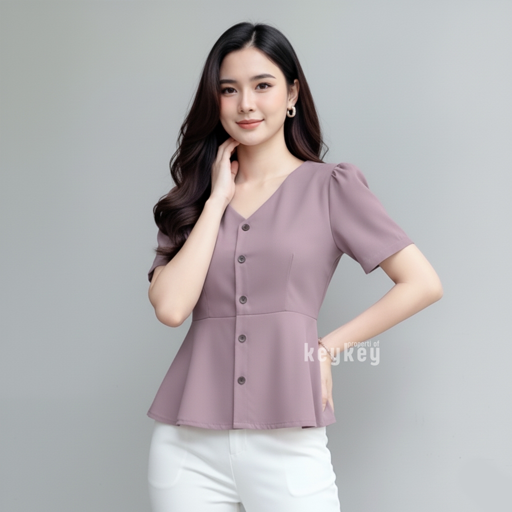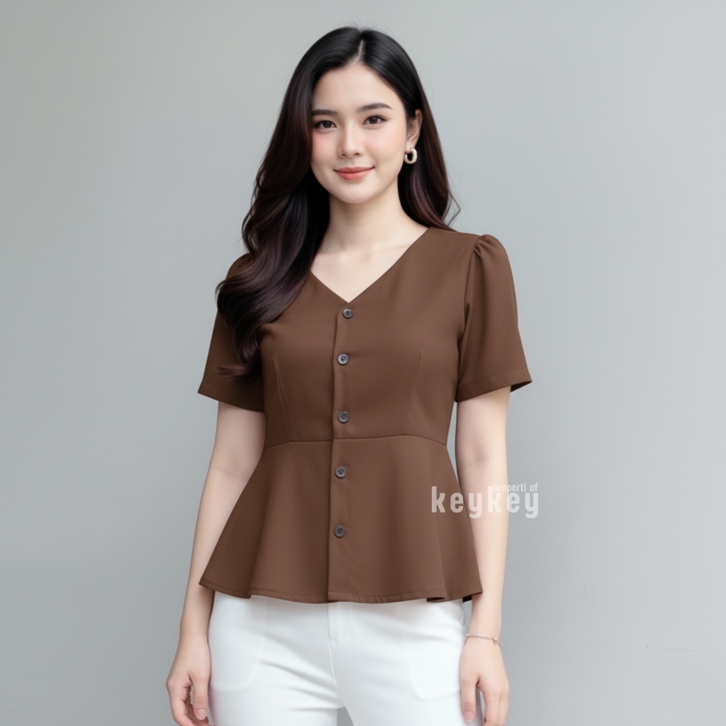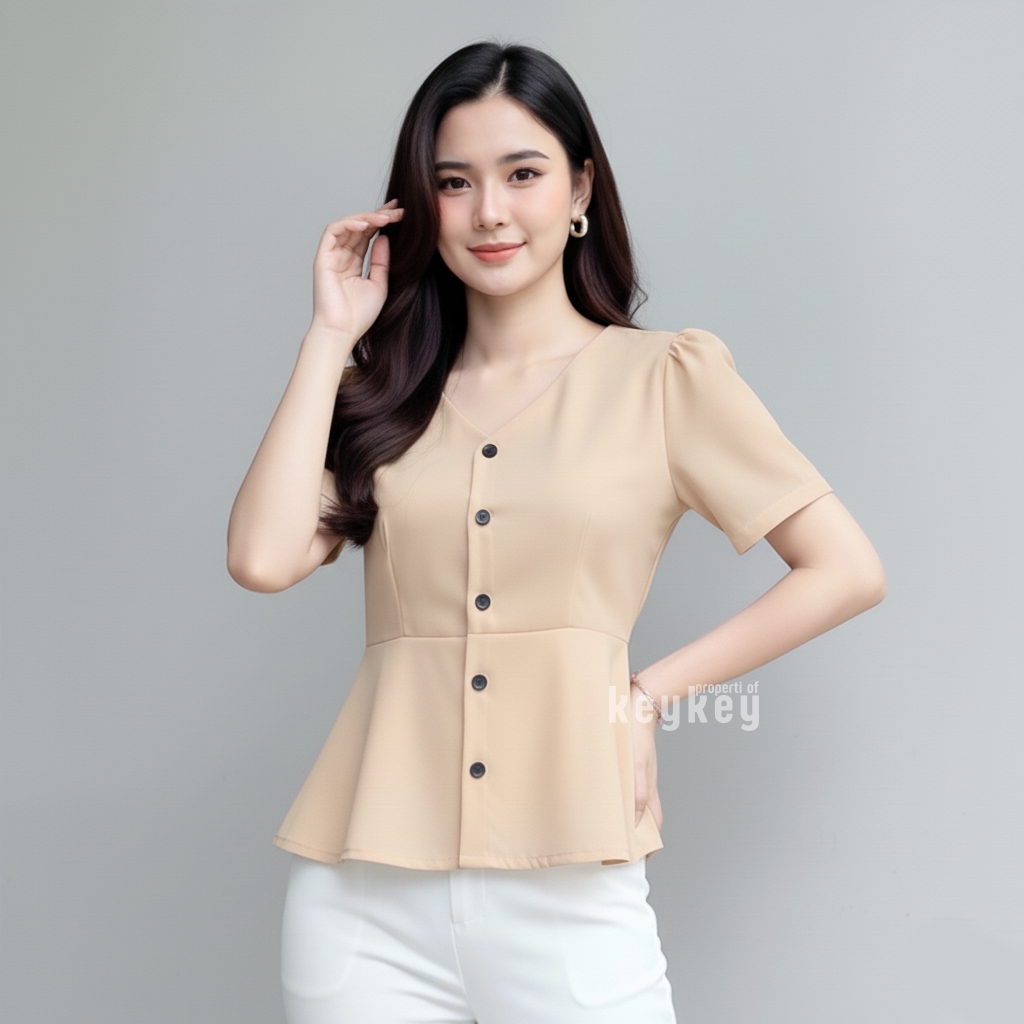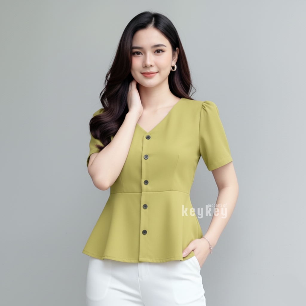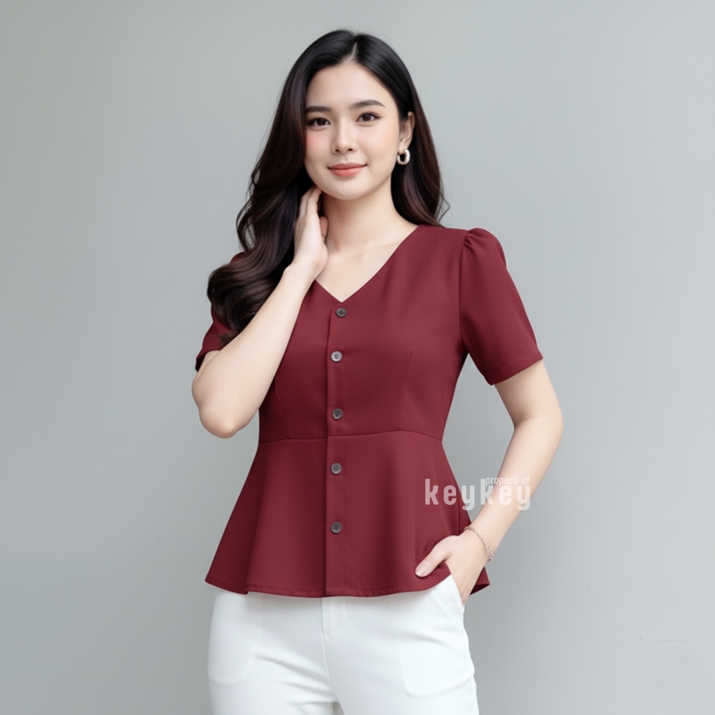 Blouse ini hadir dengan model peplum elegan yang mampu memberikan siluet ramping pada tubuh, sehingga cocok dipakai untuk segala suasana. Dibuat dari bahan wolfis premium, kainnya halus, jatuh, adem, dan tidak menerawang, sehingga nyaman dipakai seharian untuk kerja, kuliah, maupun acara santai.