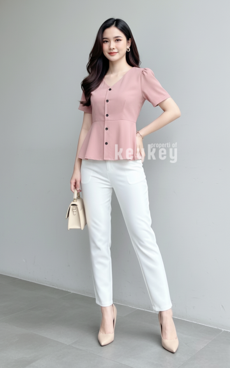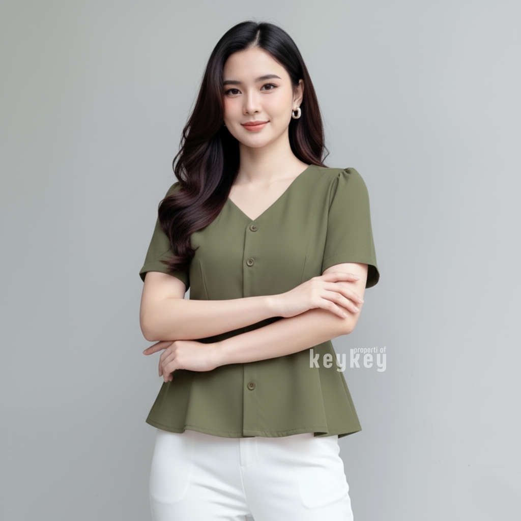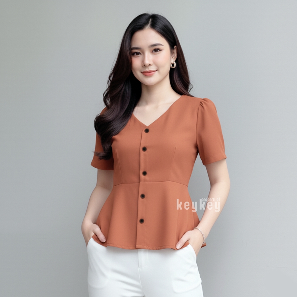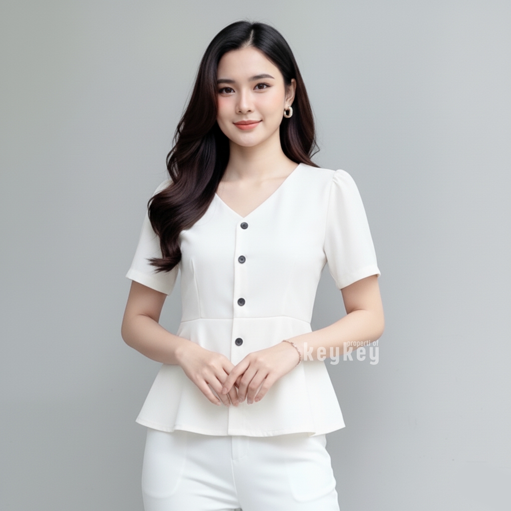 Blouse ini hadir dengan model peplum elegan yang mampu memberikan siluet ramping pada tubuh, sehingga cocok dipakai untuk segala suasana. Dibuat dari bahan wolfis premium, kainnya halus, jatuh, adem, dan tidak menerawang, sehingga nyaman dipakai seharian untuk kerja, kuliah, maupun acara santai.