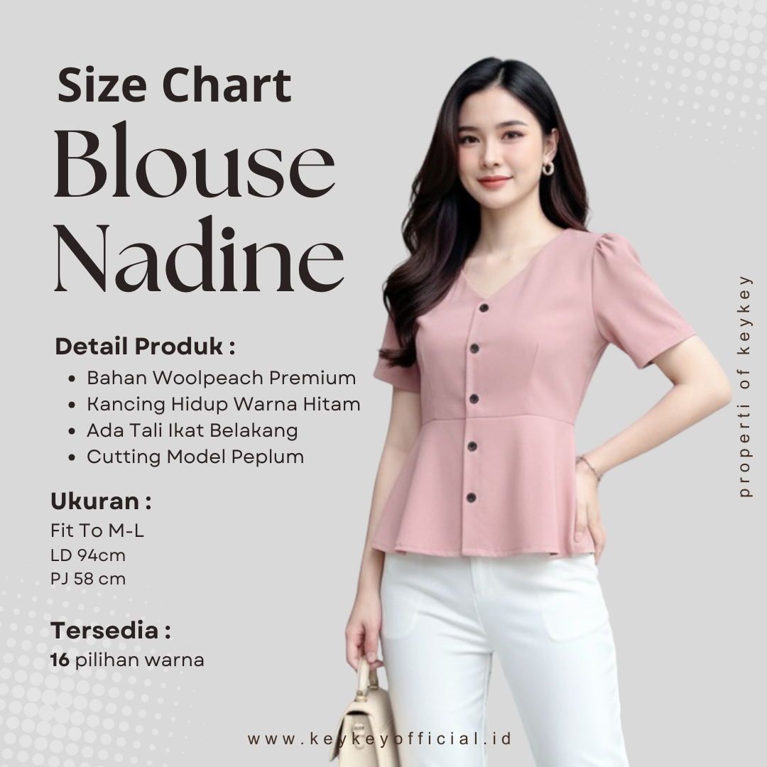 Dengan harga terjangkau namun kualitas tetap premium, BLOUSE NADINE menjadi pilihan tepat untuk melengkapi koleksi fashion harianmu. Tersedia juga dalam 16 varian warna kekinian, sehingga kamu bisa mix & match sesuai gaya personalmu.