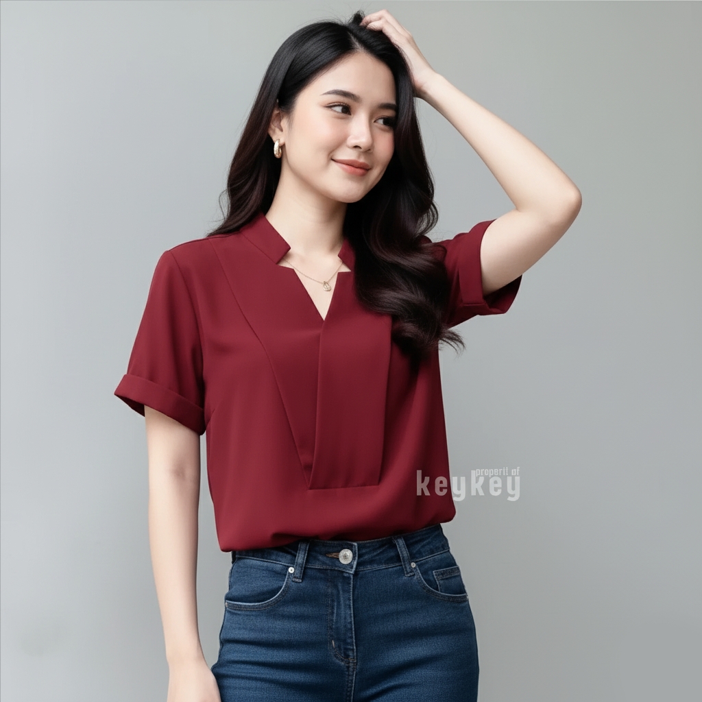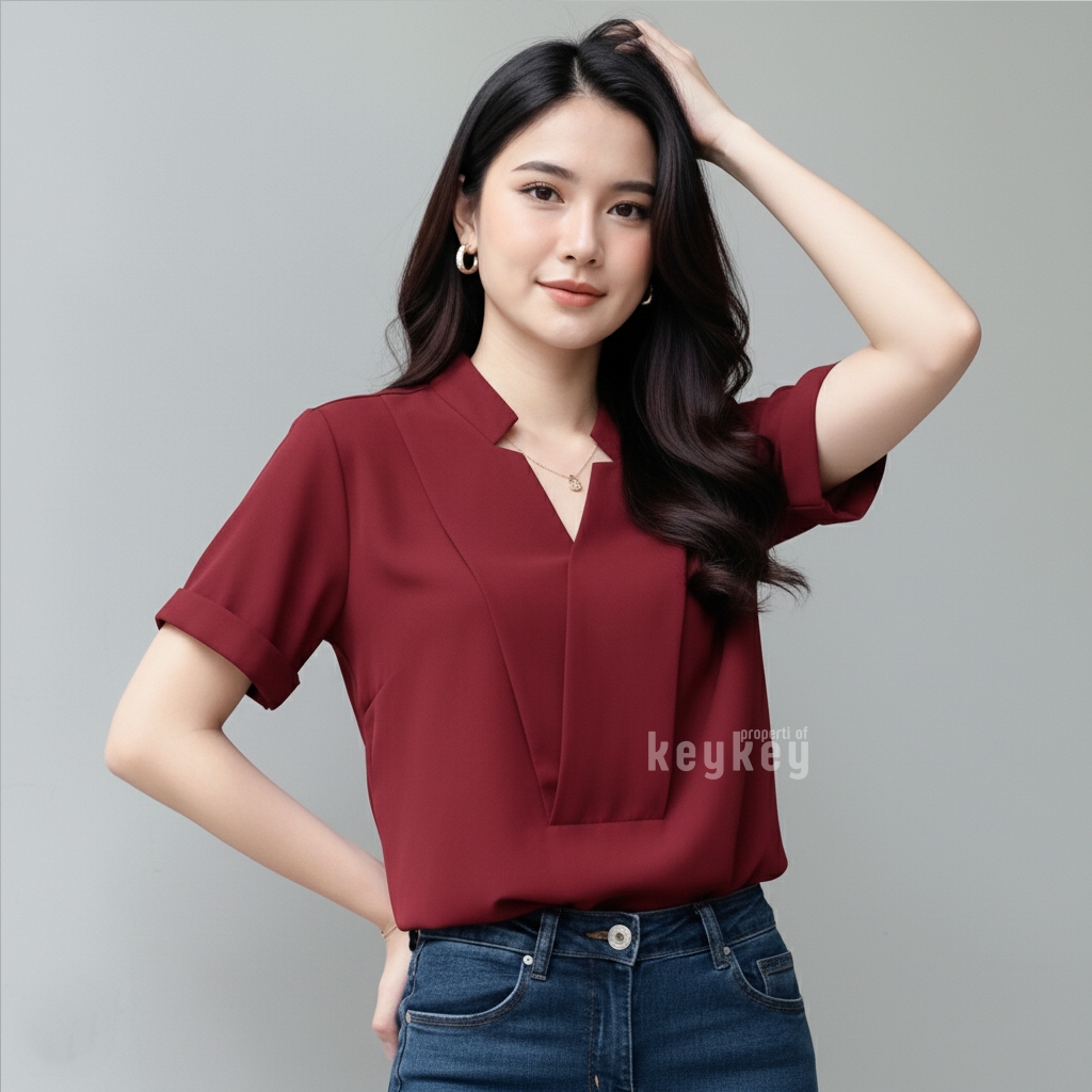 Terbuat dari bahan moscrepe premium yang halus, adem, dan ringan, membuat setiap gerakan terasa nyaman sepanjang hari. Desain simple tanpa kancing memberi sentuhan minimalis modern, sehingga mudah dipadu padankan dengan jeans, kulot, atau rok favoritmu. Ukurannya fit to L (LD 92 cm, PJ 59 cm), pas dipakai untuk berbagai bentuk tubuh.