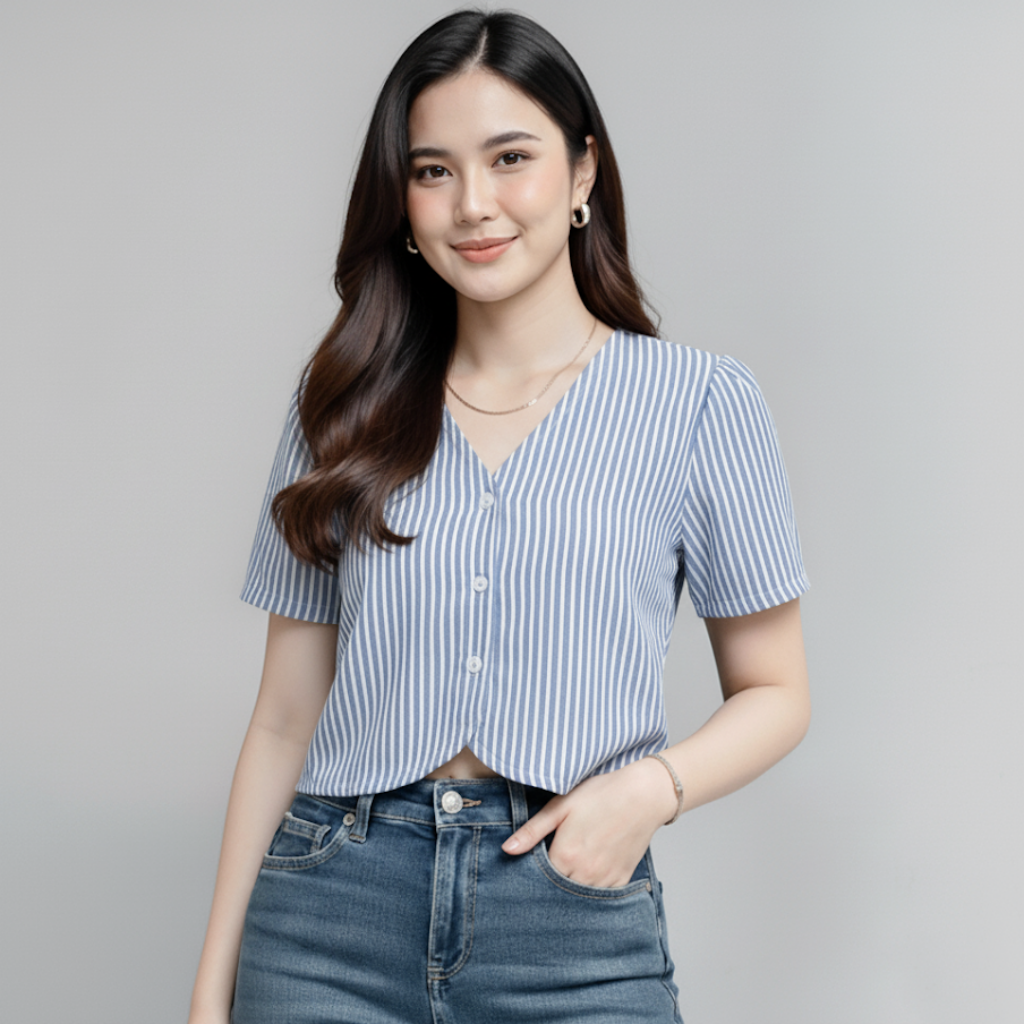 Tampil simple tapi tetap stylish kini lebih mudah dengan Blouse Simply Lime. Blouse crop top ini hadir dengan motif garis vertikal yang membuat tampilan terlihat lebih ramping sekaligus chic. Dibuat dari bahan Katun Poly PE berkualitas, blouse ini terasa ringan, adem, dan nyaman dipakai seharian baik untuk kerja, kuliah, maupun hangout santai.