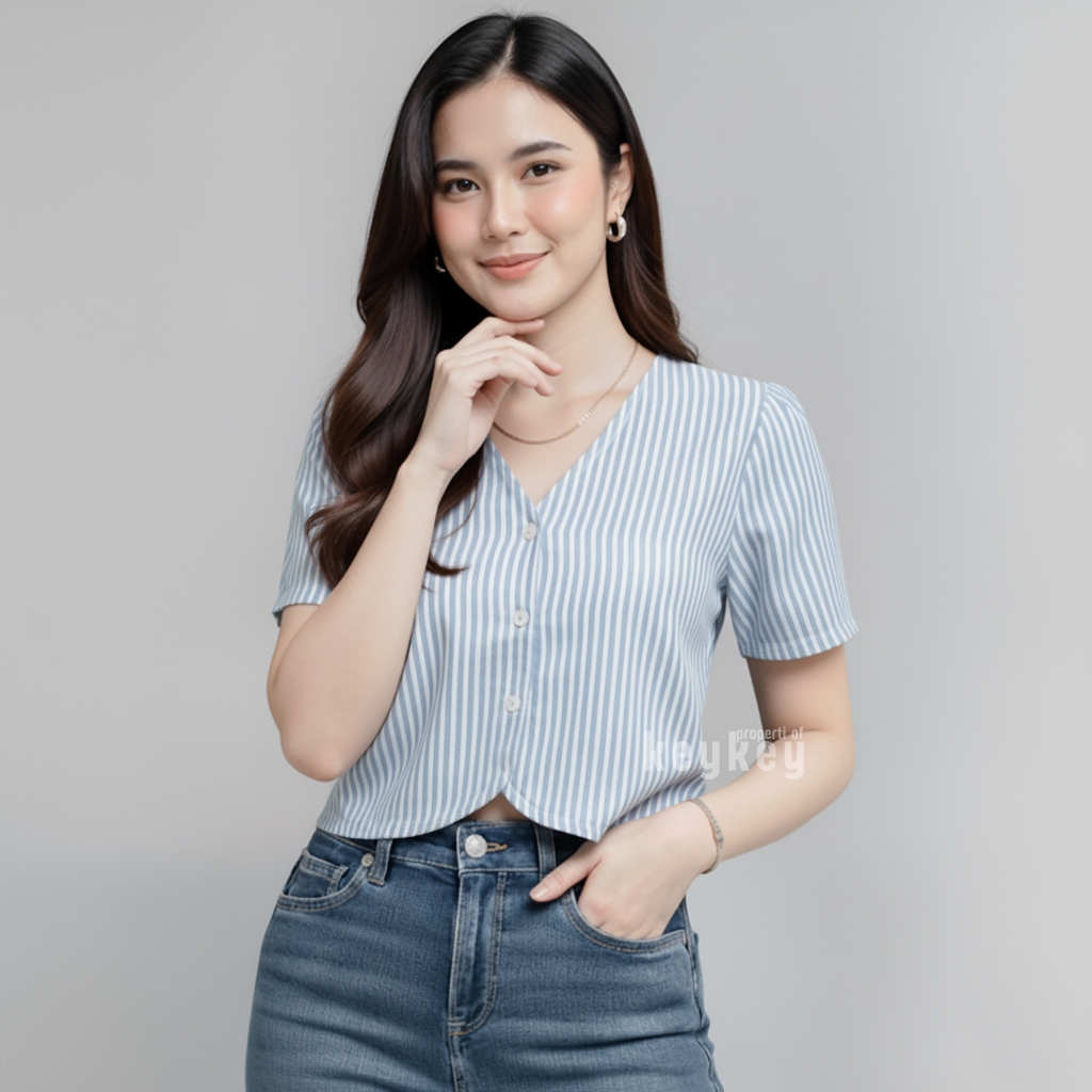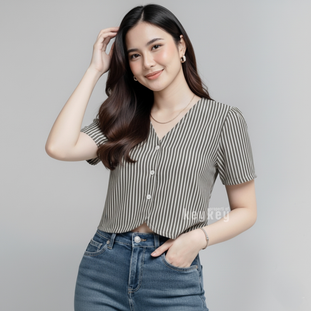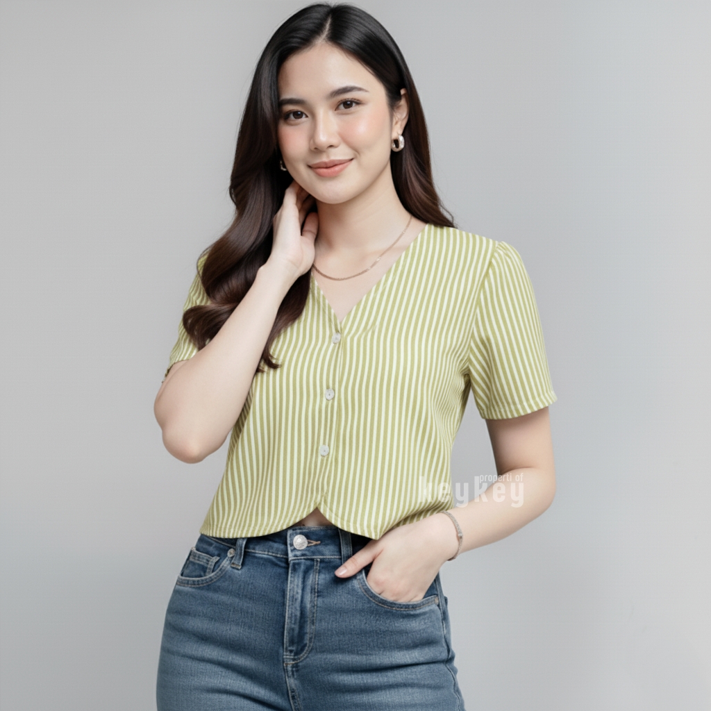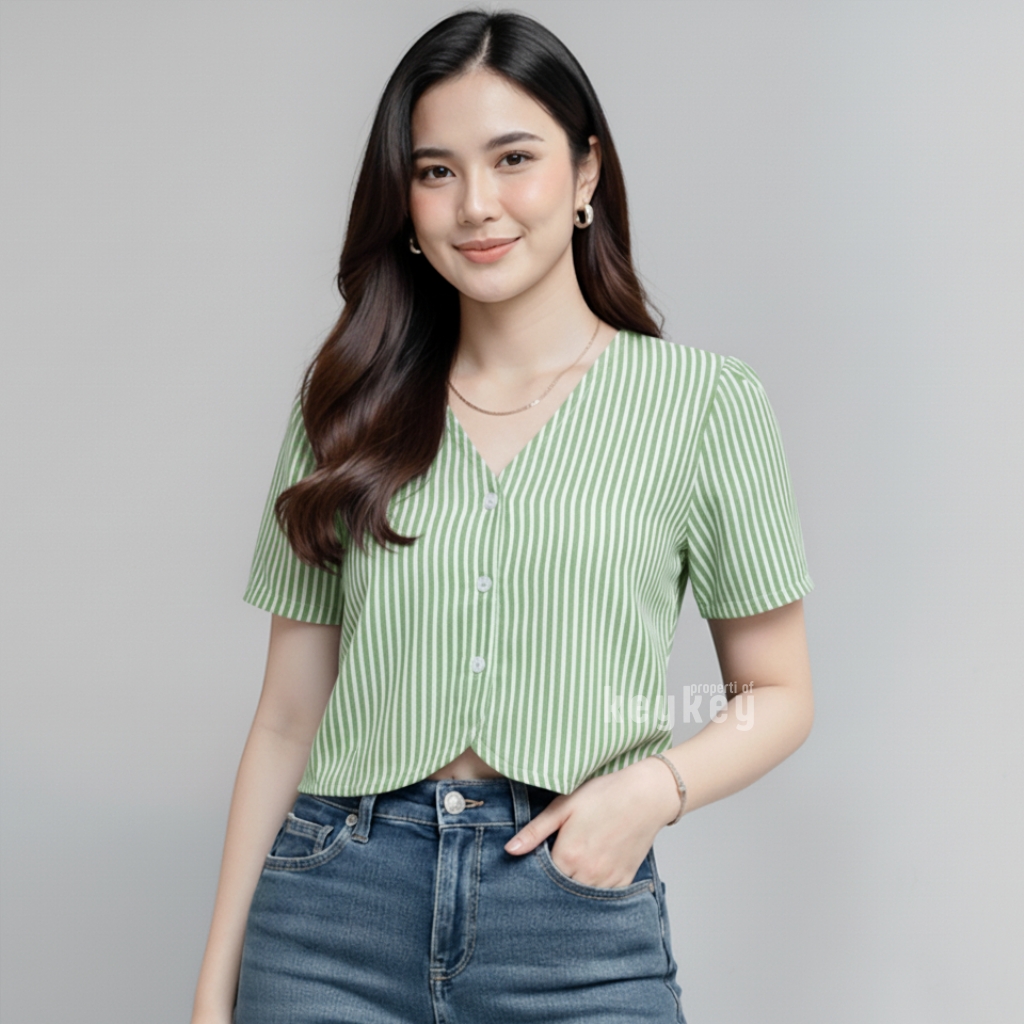 Blouse Simply Lime hadir dengan desain crop top stripes kekinian, berbahan Katun Poly PE yang adem & ringan. Full kancing hidup, cutting modis, cocok untuk gaya casual sehari-hari.