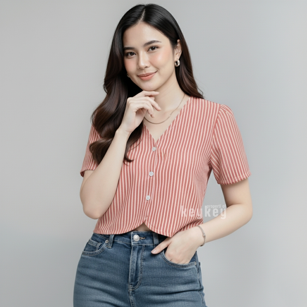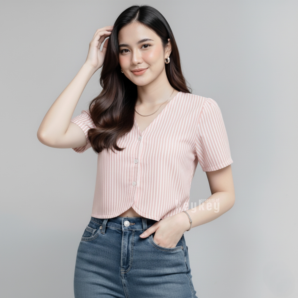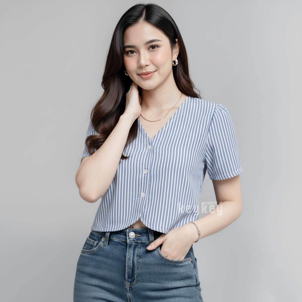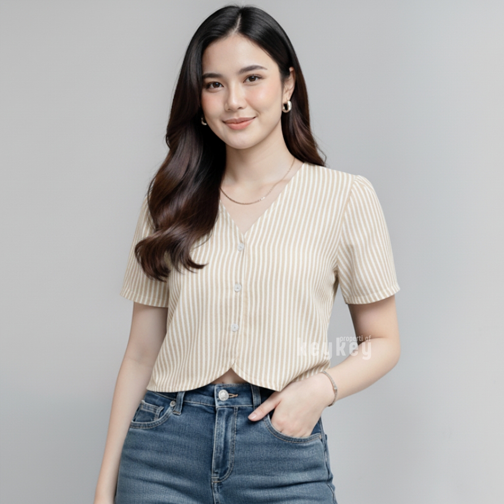 Blouse Simply Lime hadir dengan desain crop top stripes kekinian, berbahan Katun Poly PE yang adem & ringan. Full kancing hidup, cutting modis, cocok untuk gaya casual sehari-hari.