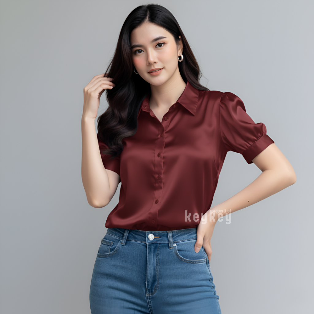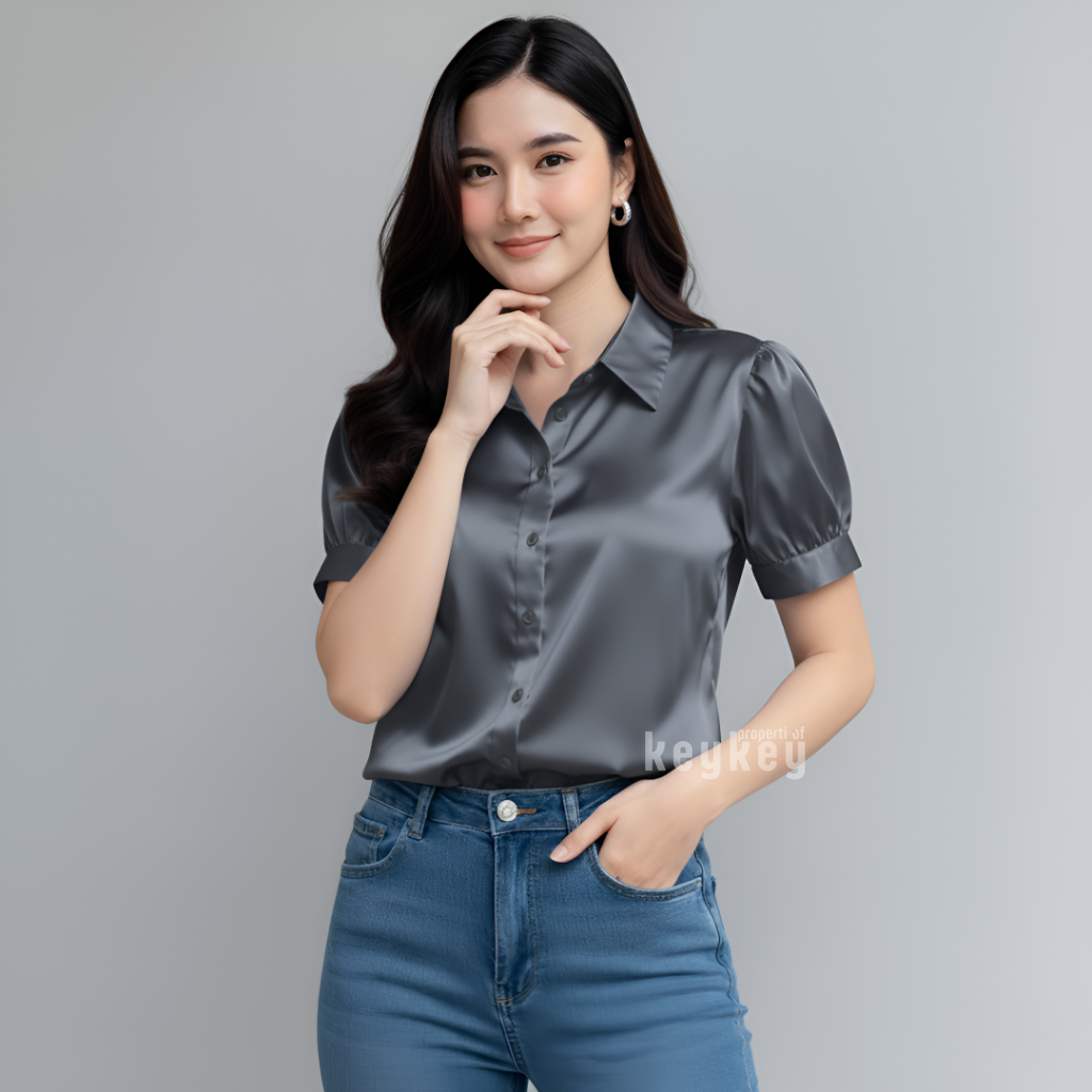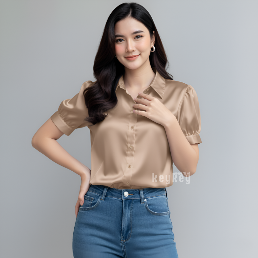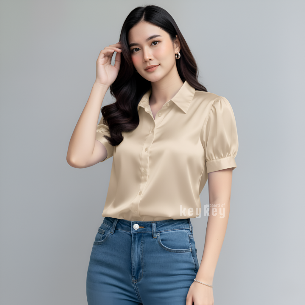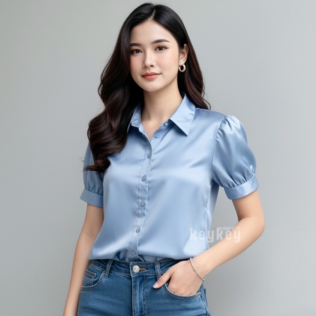 Desain lengan pendek puff modern dengan kerah klasik membuat penampilan terlihat rapi sekaligus stylish, cocok untuk berbagai aktivitas: ke kantor, kuliah, meeting, atau sekadar hangout santai bersama teman. Cutting fit to L–XL dengan LD ±104 cm dan panjang ±57 cm memastikan nyaman dipakai seharian, tidak gerah, dan tetap leluasa bergerak.