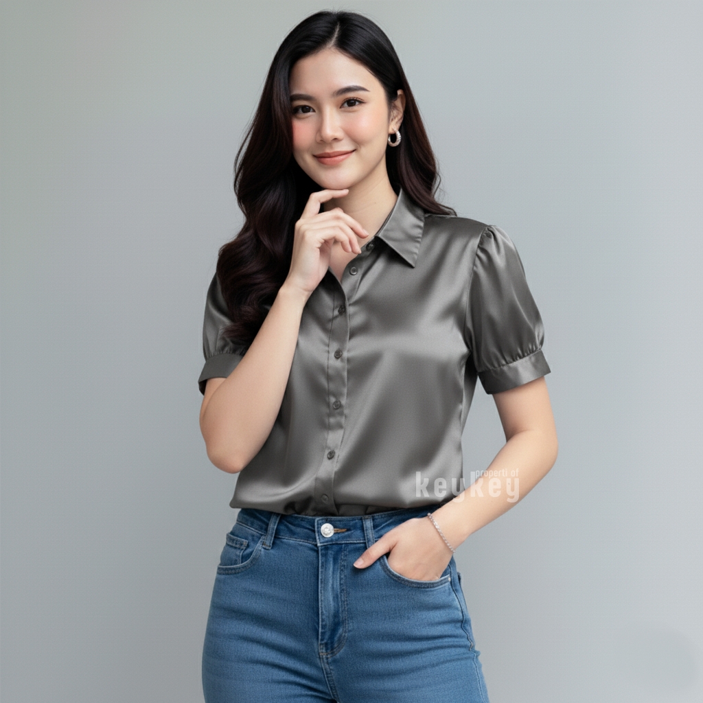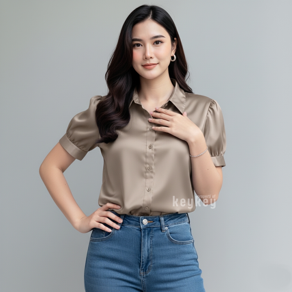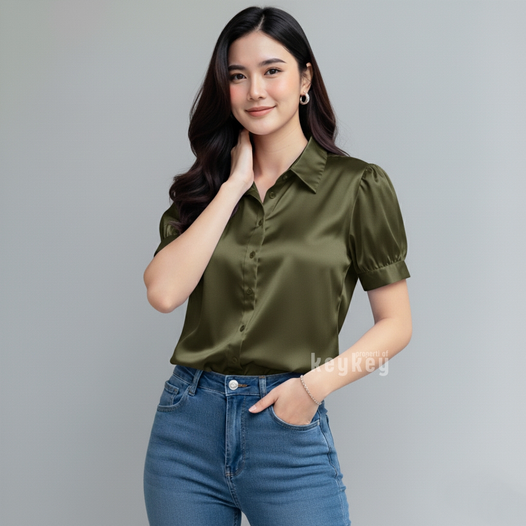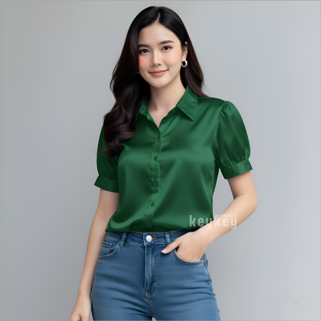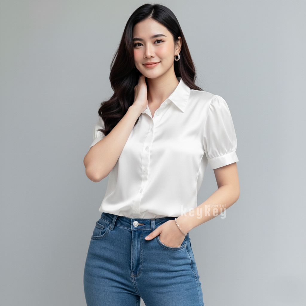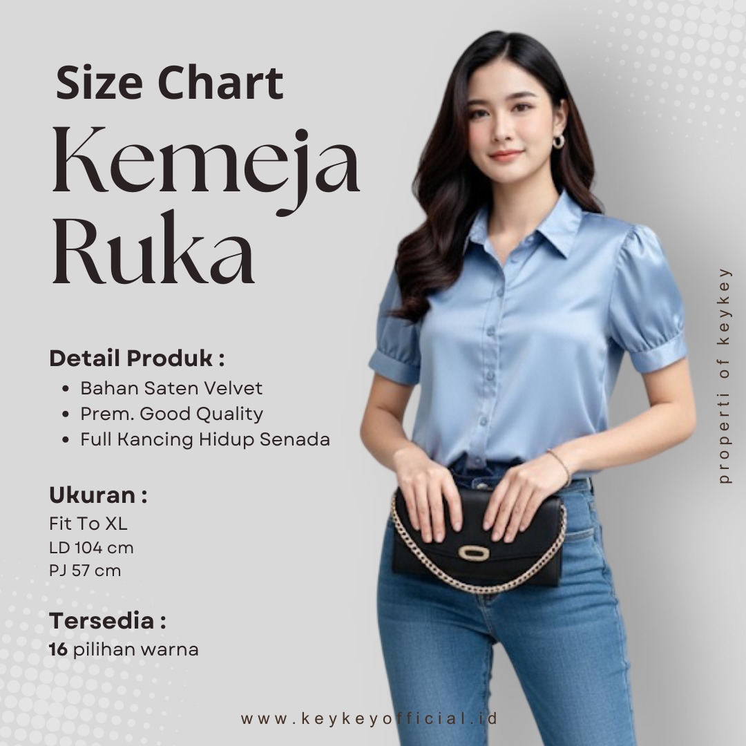 Desain lengan pendek puff modern dengan kerah klasik membuat penampilan terlihat rapi sekaligus stylish, cocok untuk berbagai aktivitas: ke kantor, kuliah, meeting, atau sekadar hangout santai bersama teman. Cutting fit to L–XL dengan LD ±104 cm dan panjang ±57 cm memastikan nyaman dipakai seharian, tidak gerah, dan tetap leluasa bergerak.