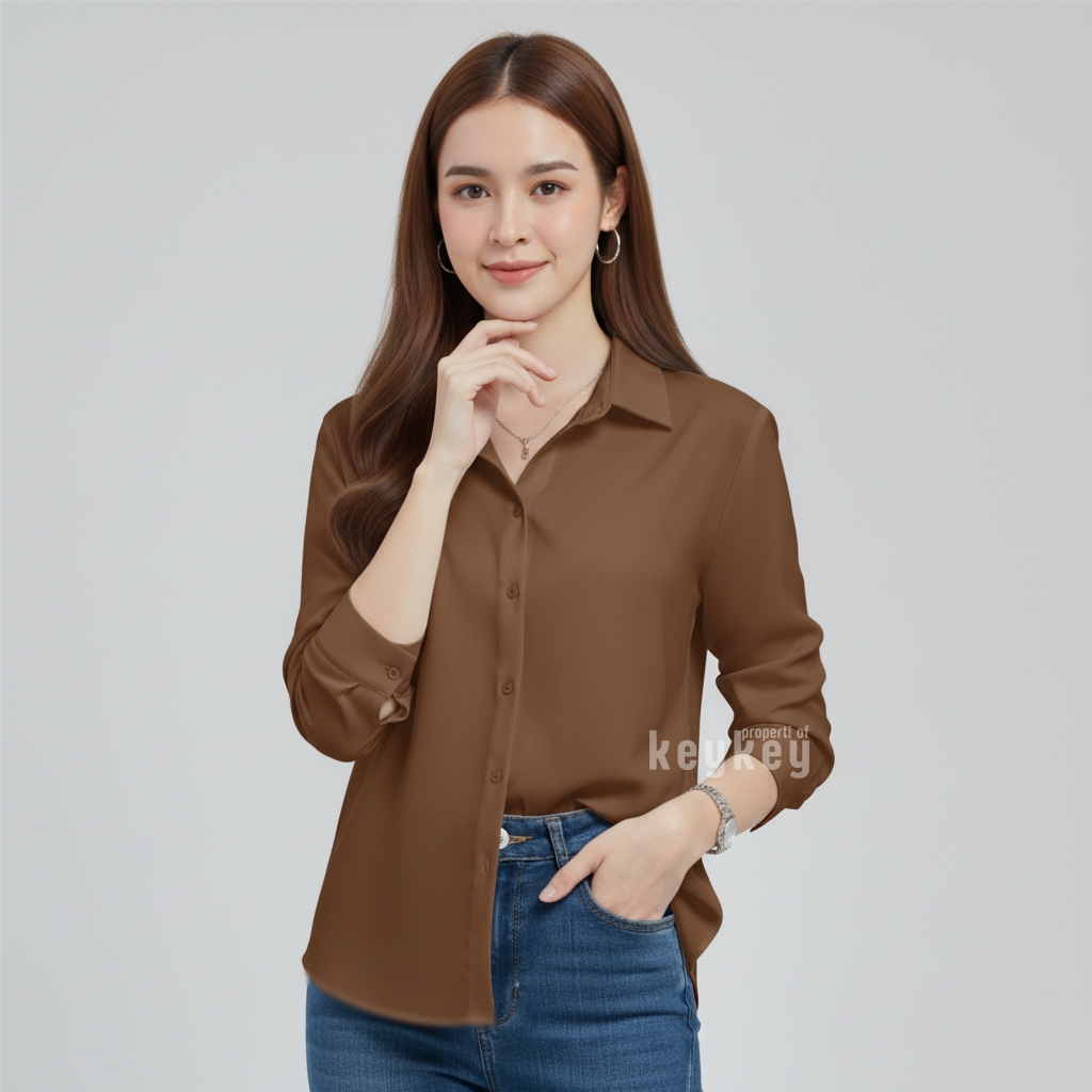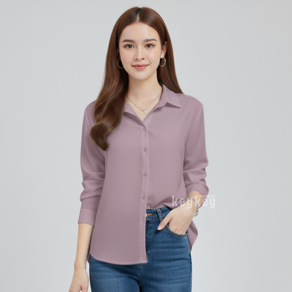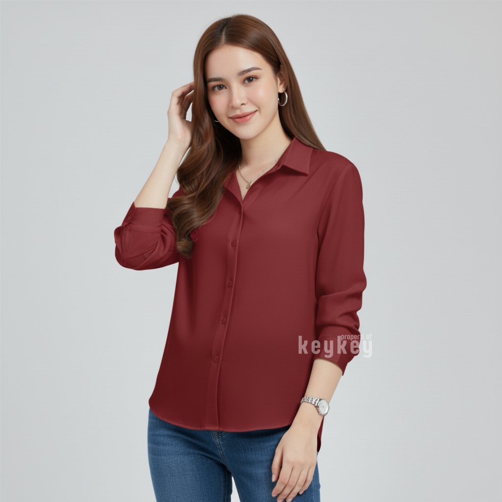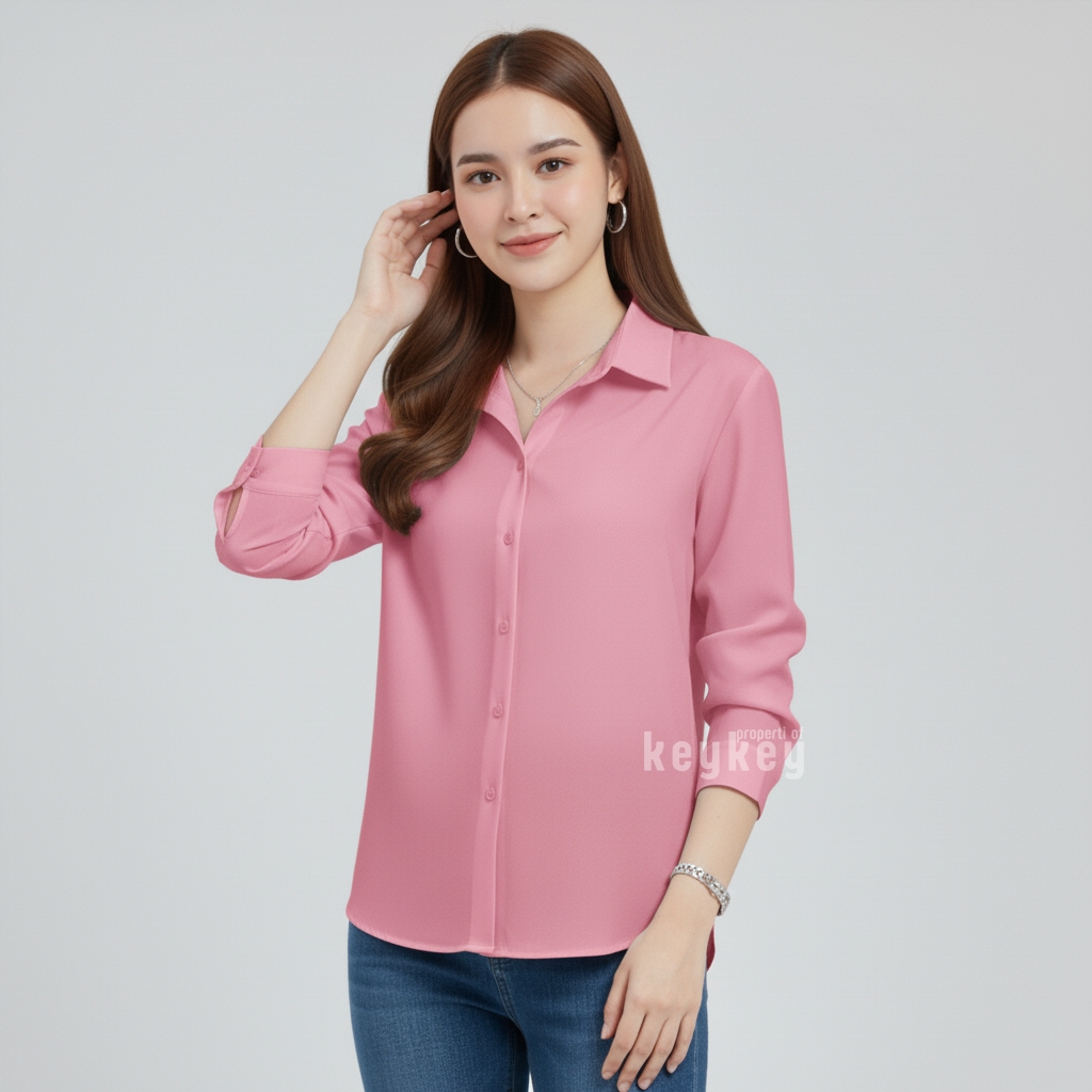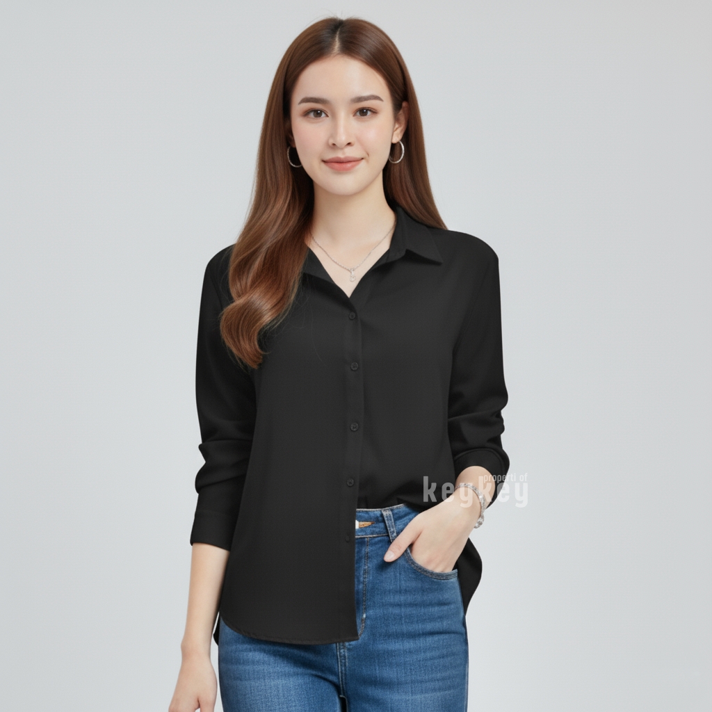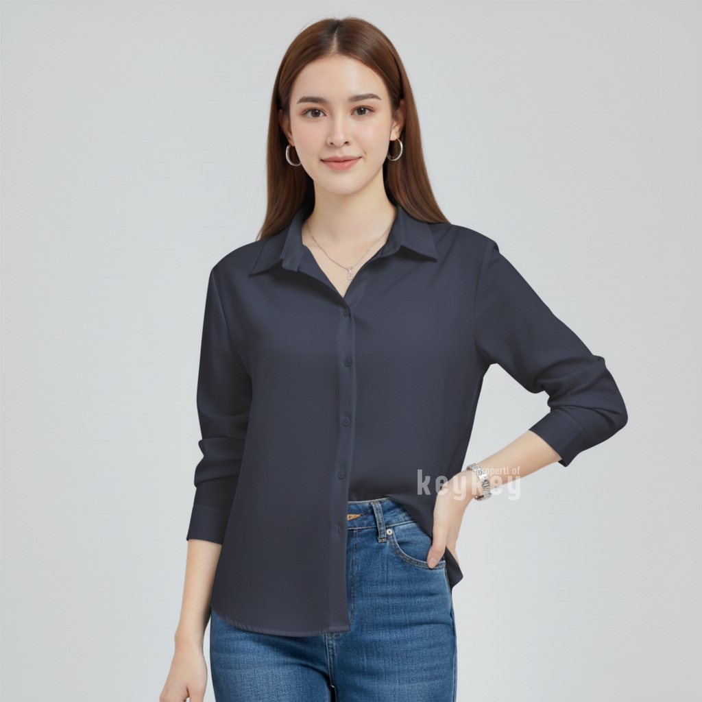 Modelnya simpel dengan potongan loose fit, membuat tubuh tetap leluasa bergerak tanpa kehilangan kesan stylish. Lengan panjang dengan detail kancing menambah sentuhan formal namun tetap bisa dipakai santai. Bisa kamu padukan dengan jeans untuk gaya casual, atau celana bahan untuk tampilan profesional saat kerja maupun meeting.