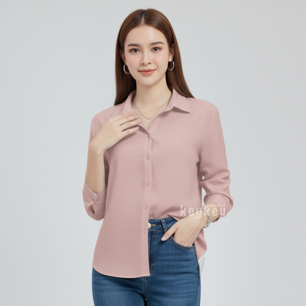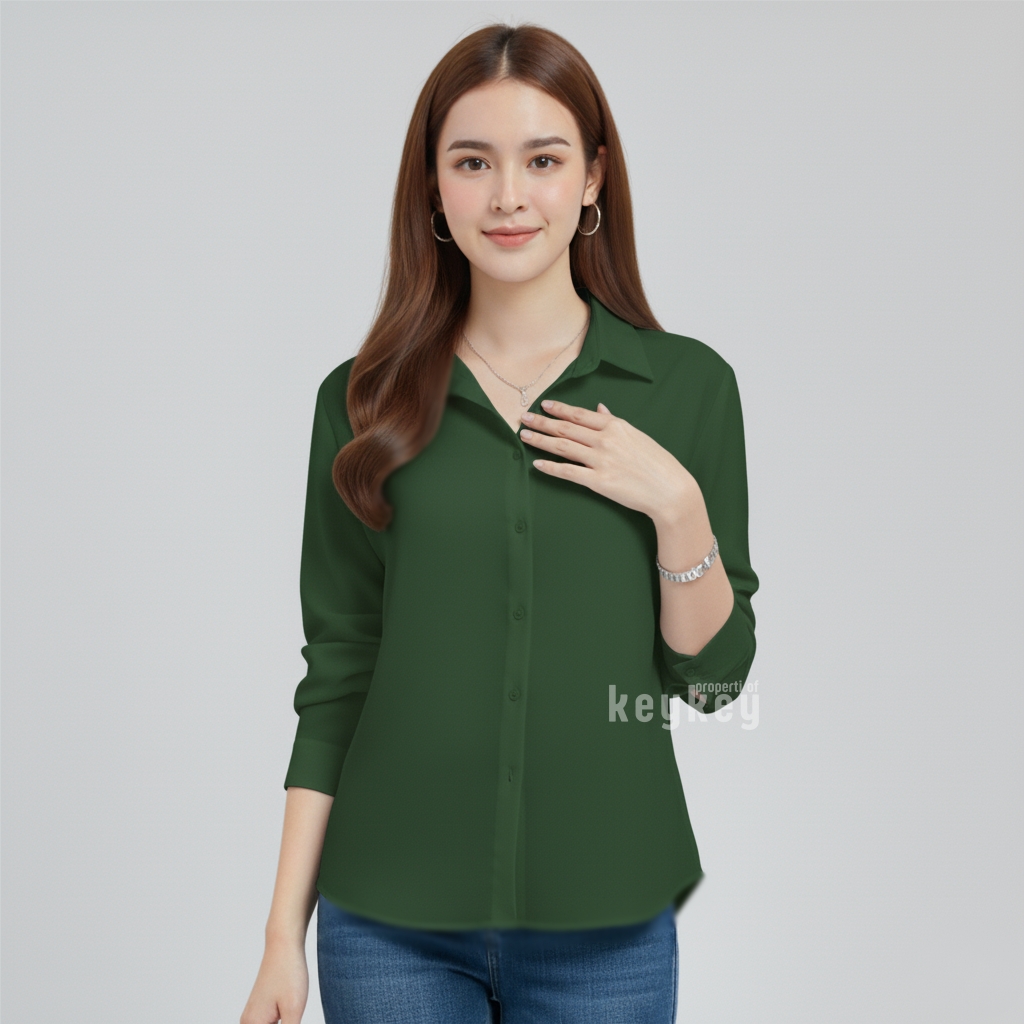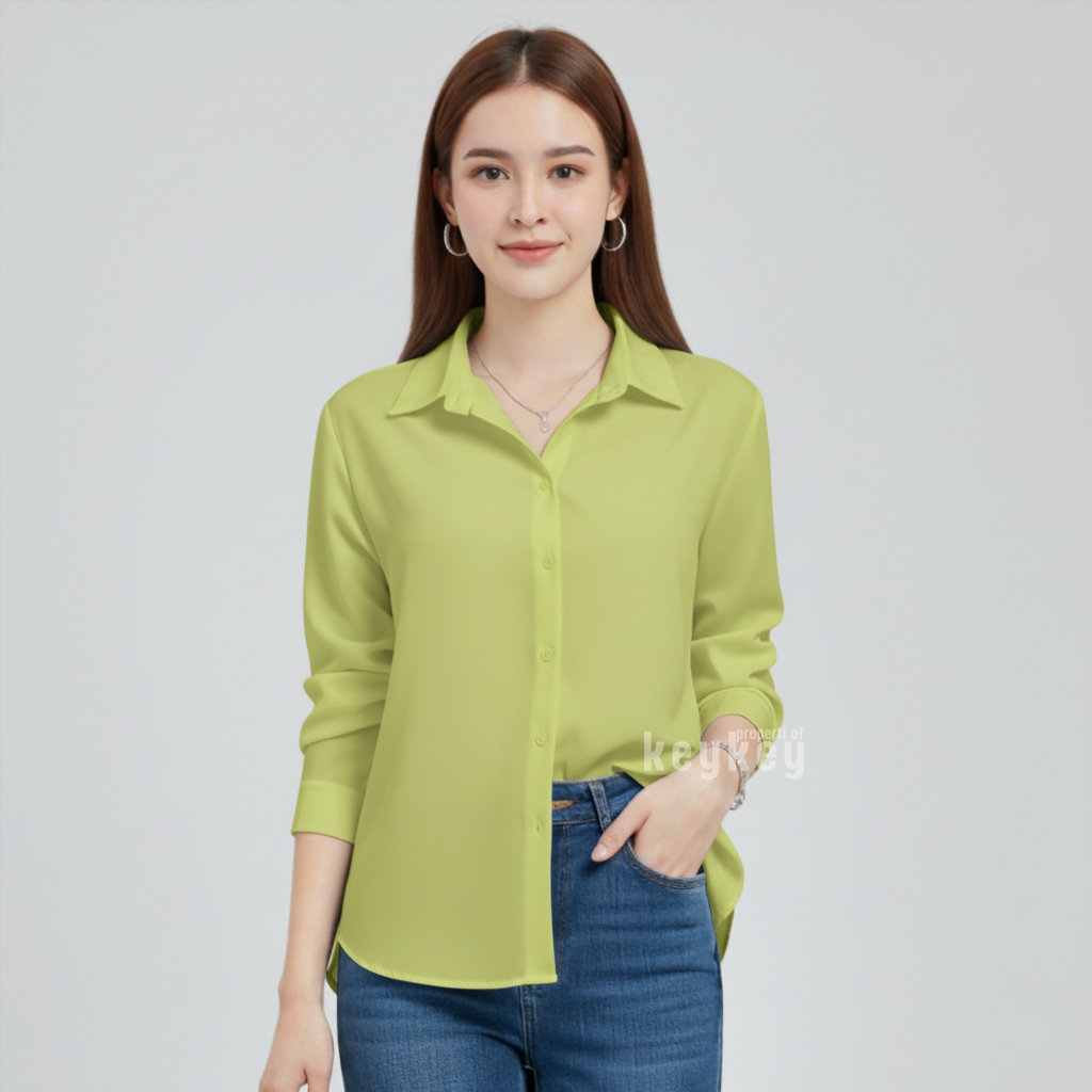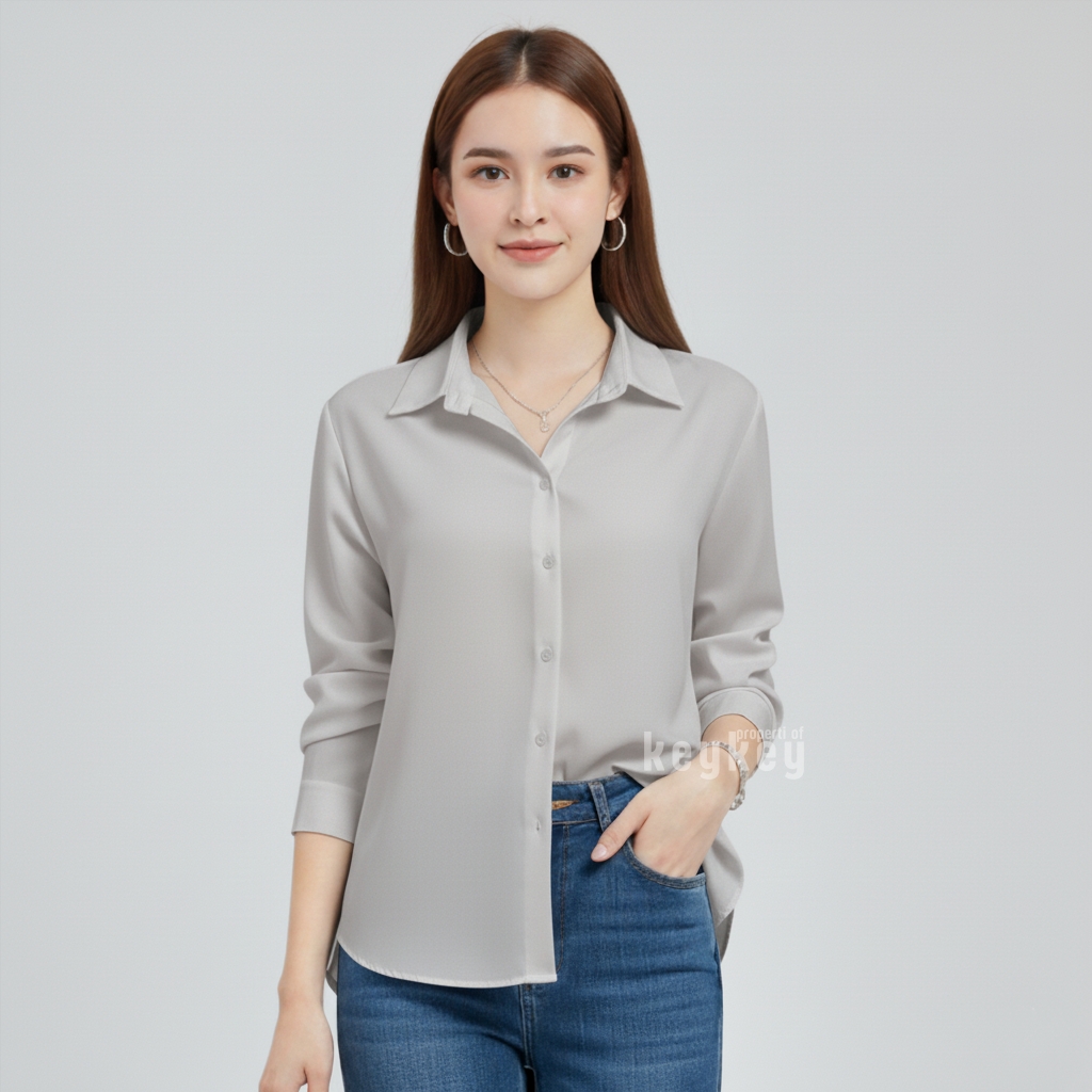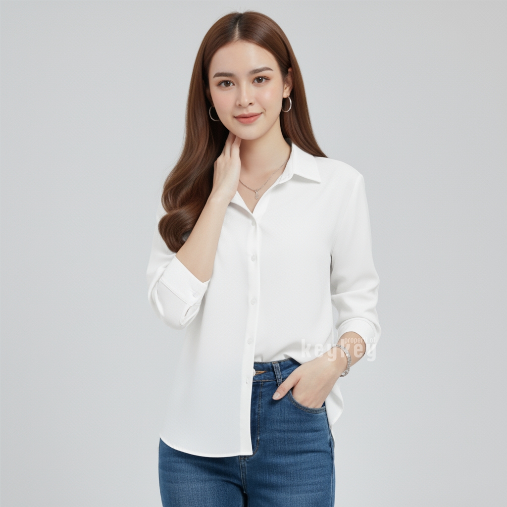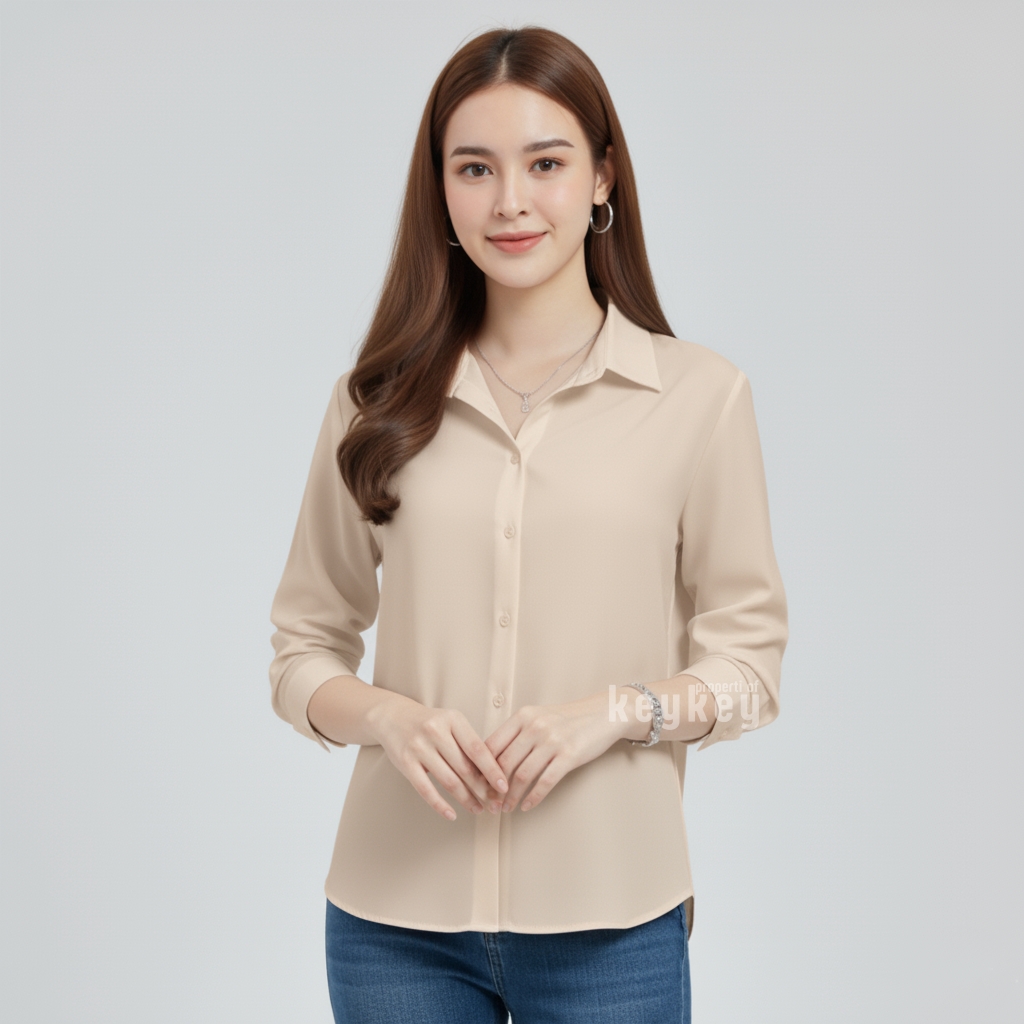 Modelnya simpel dengan potongan loose fit, membuat tubuh tetap leluasa bergerak tanpa kehilangan kesan stylish. Lengan panjang dengan detail kancing menambah sentuhan formal namun tetap bisa dipakai santai. Bisa kamu padukan dengan jeans untuk gaya casual, atau celana bahan untuk tampilan profesional saat kerja maupun meeting.