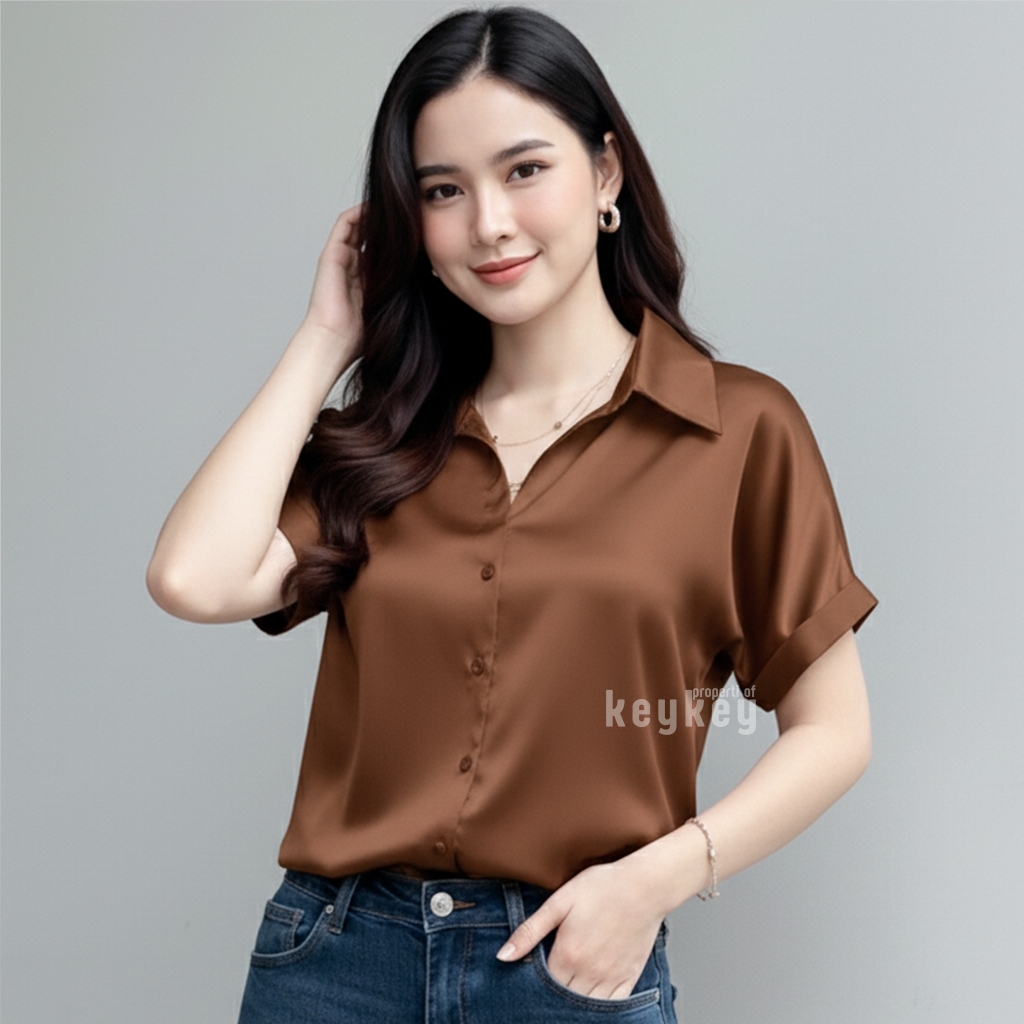 Kemeja VILO Mocca hadir dengan bahan Satin Velvet Premium yang lembut & elegan. Fit to XL, nyaman dipakai, cocok untuk kantor, casual, hingga semi-formal. Harga Rp39.900 saja!