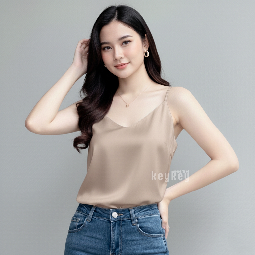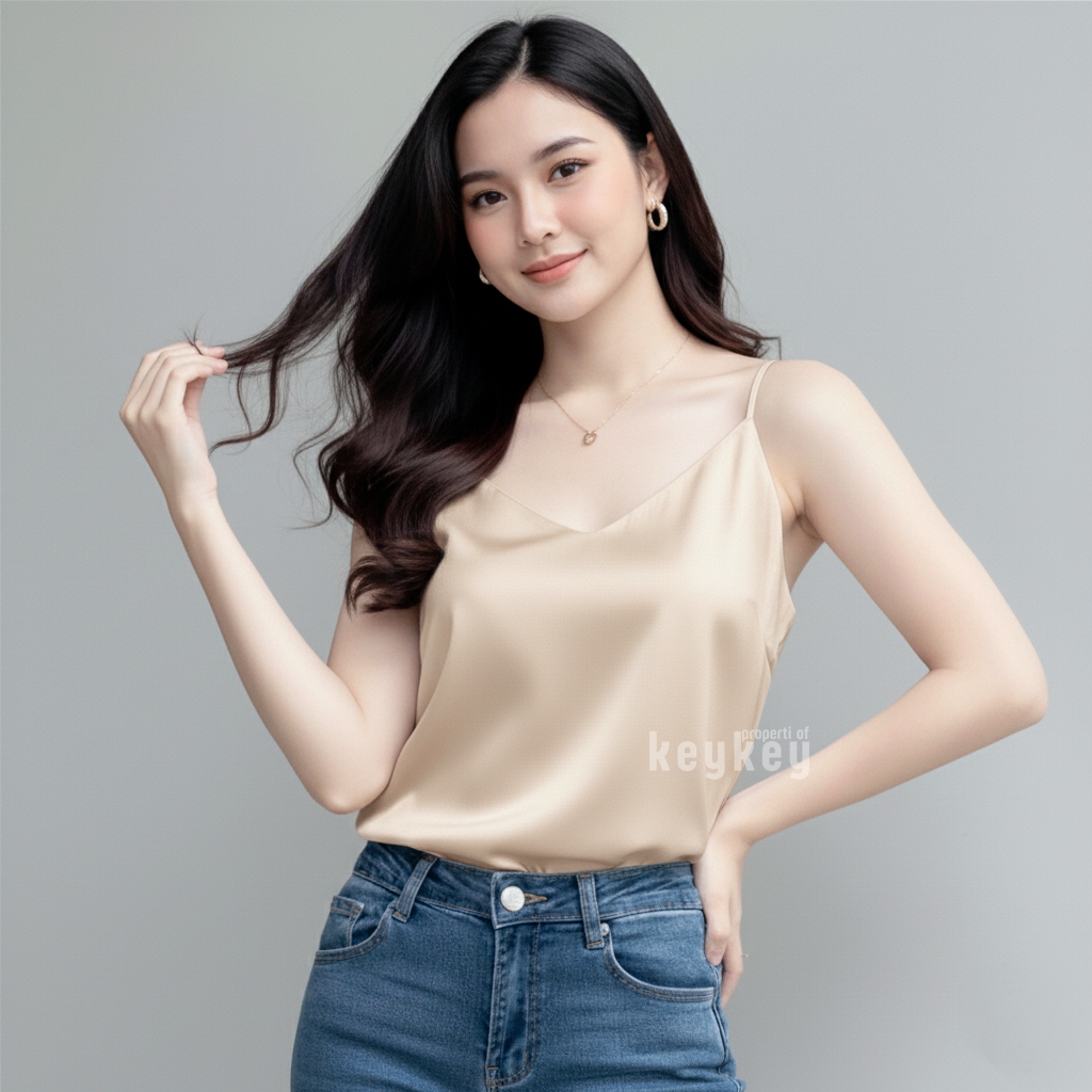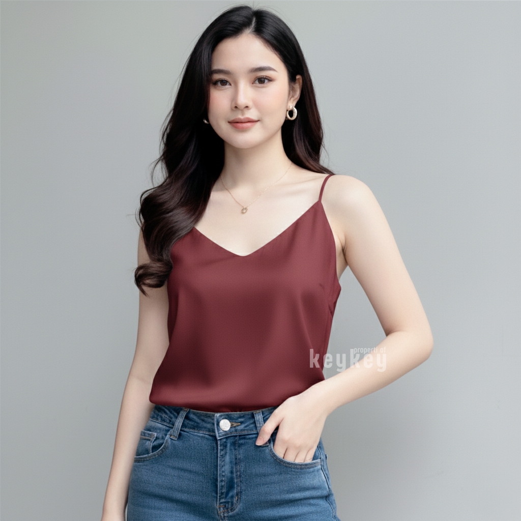 Tanktop BELINDA varian Purple hadir sebagai pilihan atasan wanita yang versatile untuk segala suasana. Dibuat dari bahan Saten Velvet Premium yang lembut, adem, dan jatuh natural, memberikan rasa nyaman sepanjang hari.